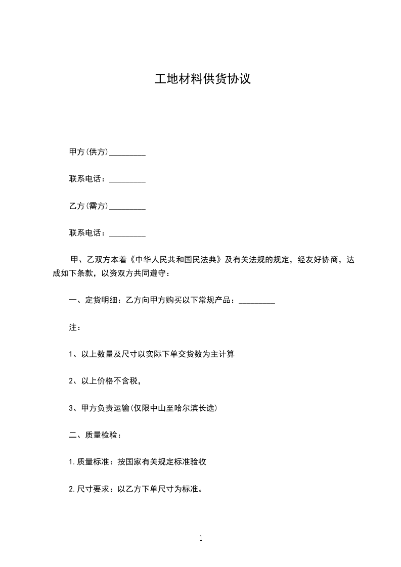 1.交货方式 :先付款再发货,一次性送至乙方指定的上海工地