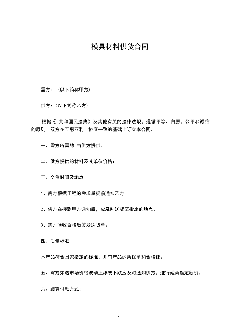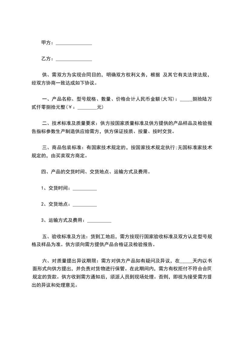 1.甲方未按合同规定的时间交货应向乙方支付逾期部分货款每日万分之三的违约金,并承担因此所造成的损失;