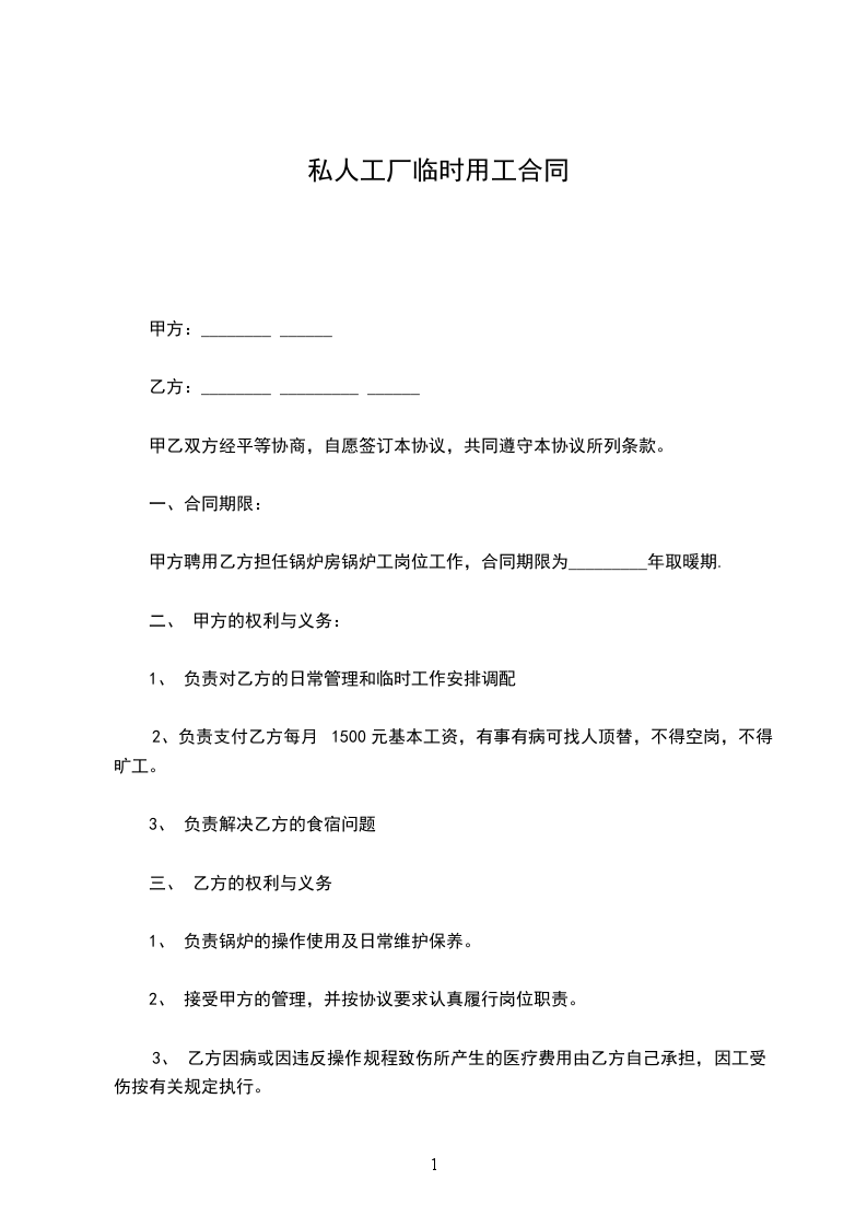 甲方聘用乙方担任锅炉房锅炉工岗位工作,合同期限为_________年取暖期.