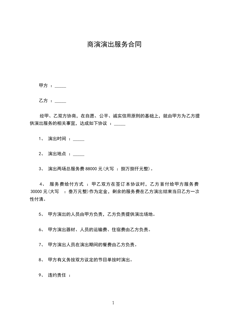 经甲、乙双方协商,在自愿、公平、诚实信用原则的基础上,就由甲方为乙方提供演出服务的相关事宜,达成如下协议 :_____