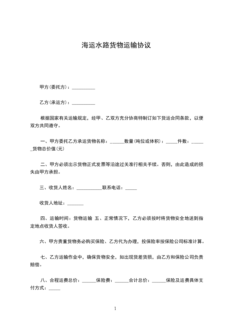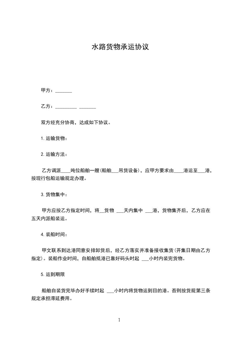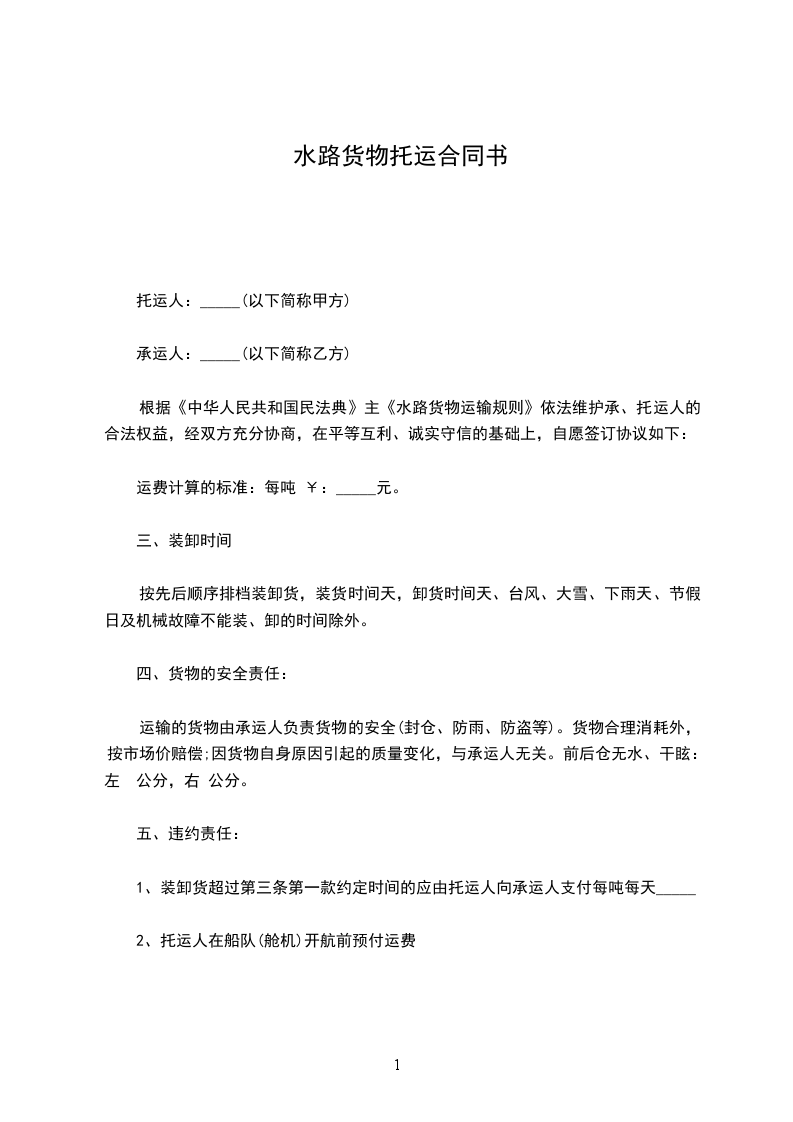 根据《中华人民共和国民法典》主《水路货物运输规则》依法维护承、托运人的合法权益,经双方充分协商,在平等互利、诚实守信的基础上,自愿签订协议如下: