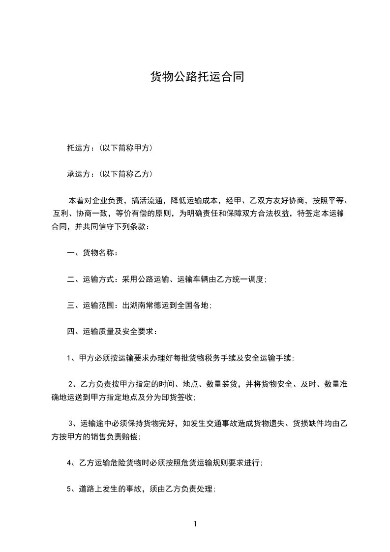 托运人:_____(以下简称甲方)