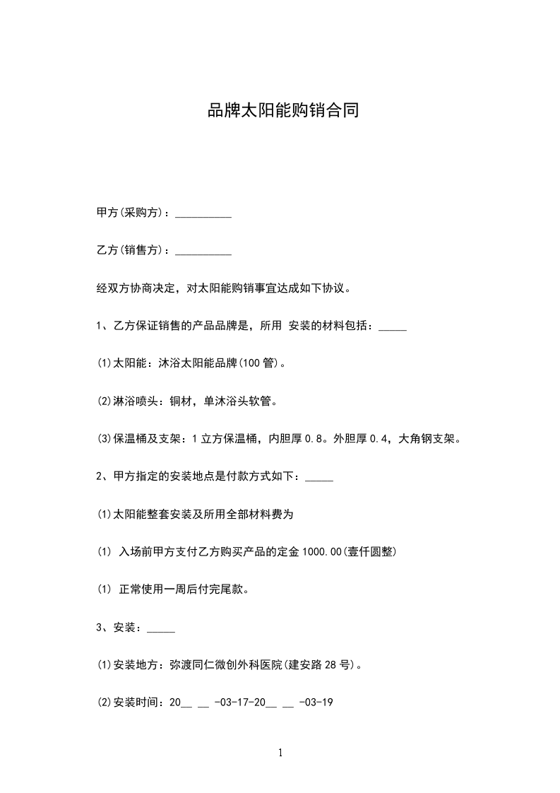 经双方协商决定,对太阳能购销事宜达成如下协议。