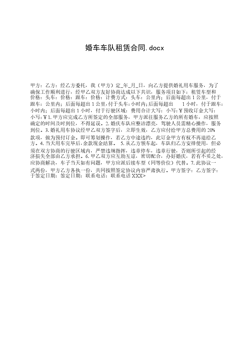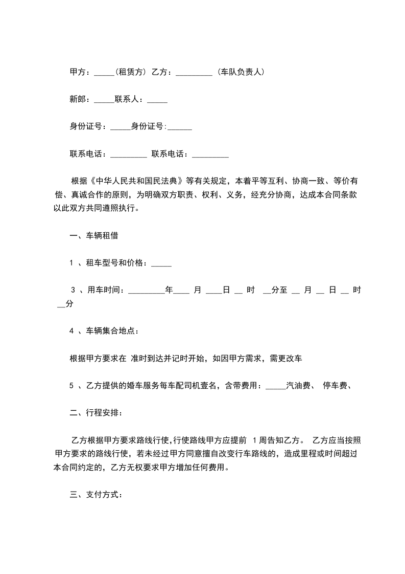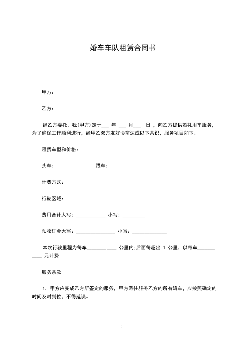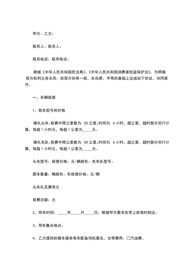 1. 甲方应完成乙方所签定的服务,甲方派往服务乙方的所有婚车,应按照确定的时间及时到位,不得延误。