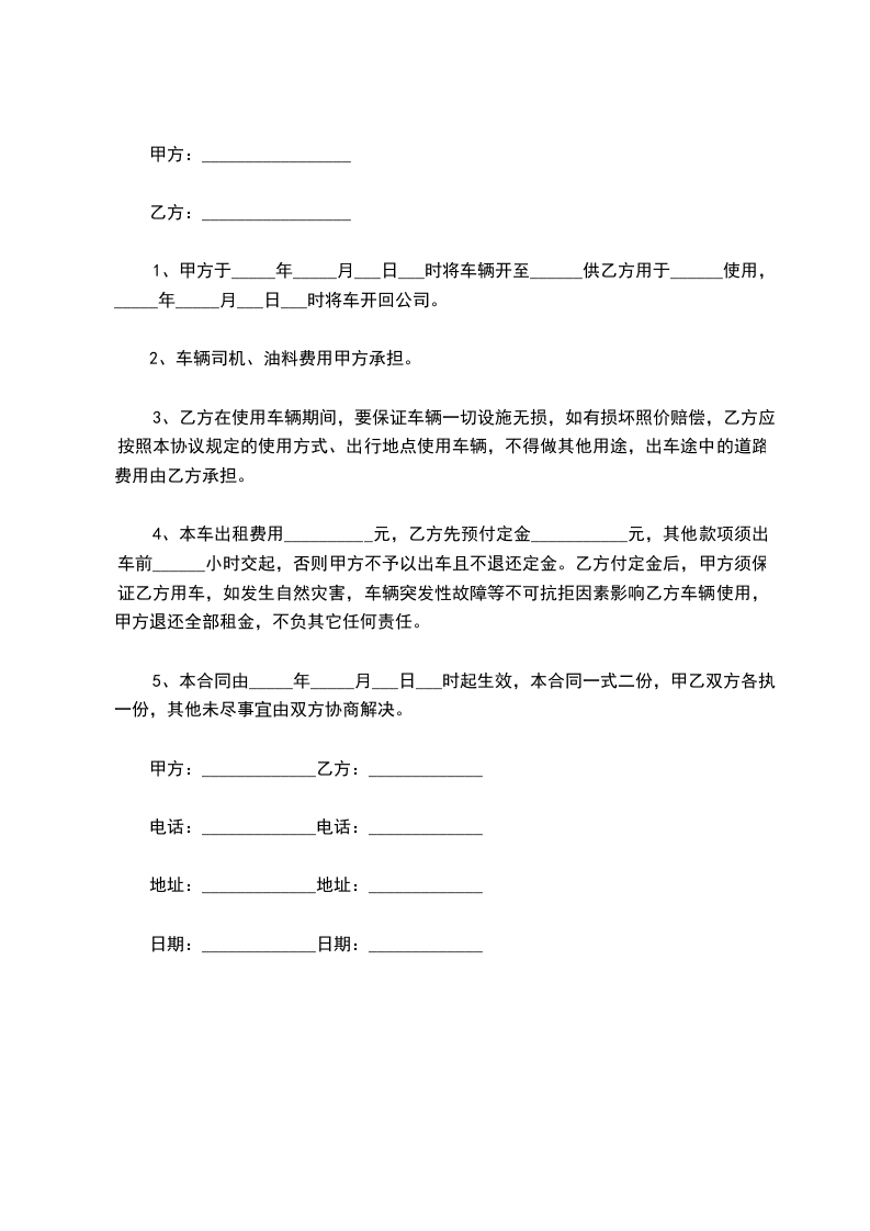 5. 从乙方领车起,车队归乙方安排使用,但必须在双方协商的行驶区域内,严禁违规指挥,违章停车,违章行驶,否则所引起的经济损失全部由乙方承担。