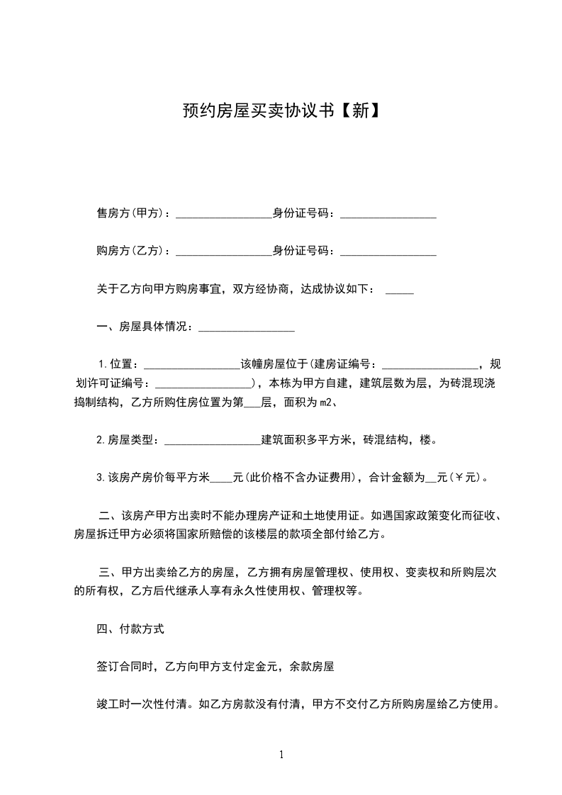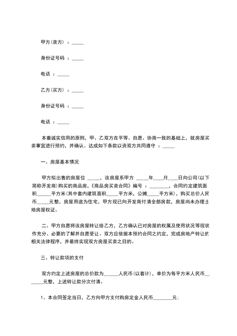 本着诚实信用的原则,甲、乙双方在平等、自愿、协商一致的基础上,就房屋买卖事宜进行预约,并确认、达成如下条款以资双方共同遵守 :_____