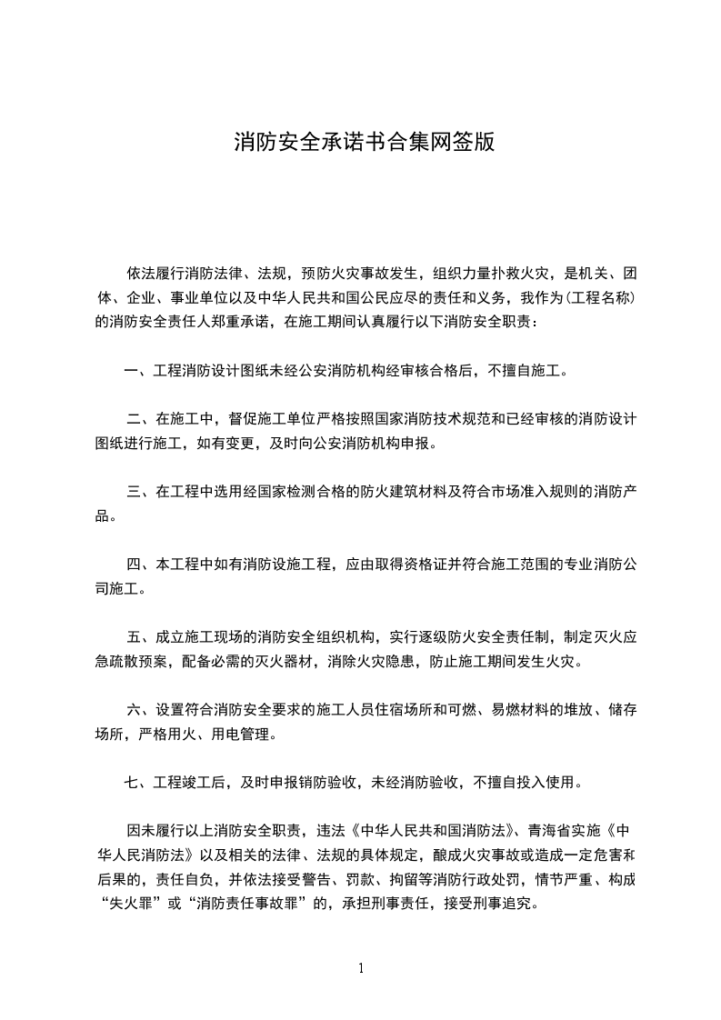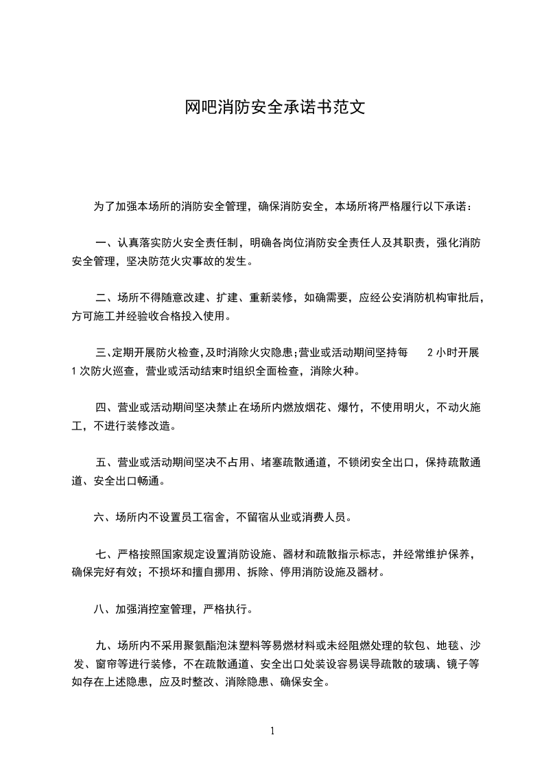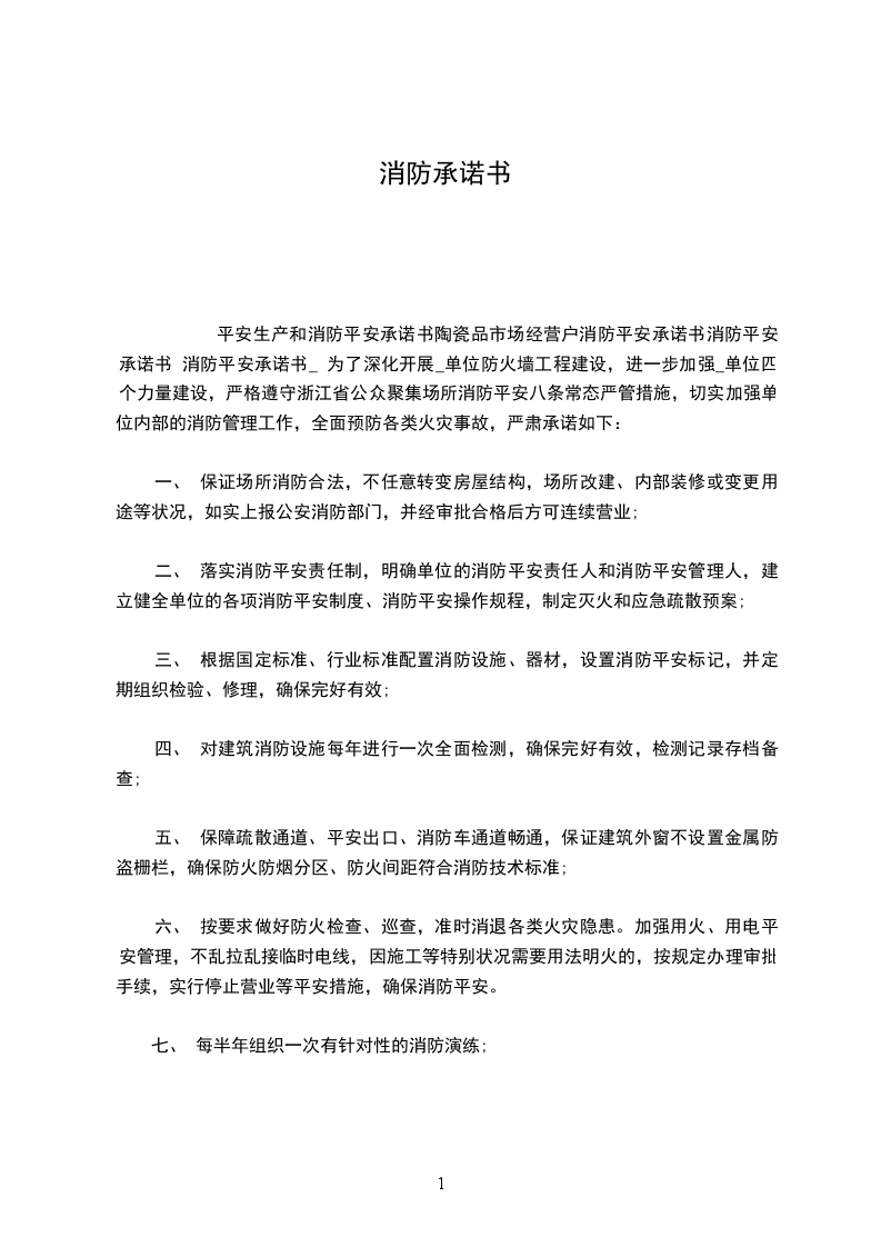 为了加强本场所的消防安全管理,确保消防安全,本场所将严格履行以下承诺: