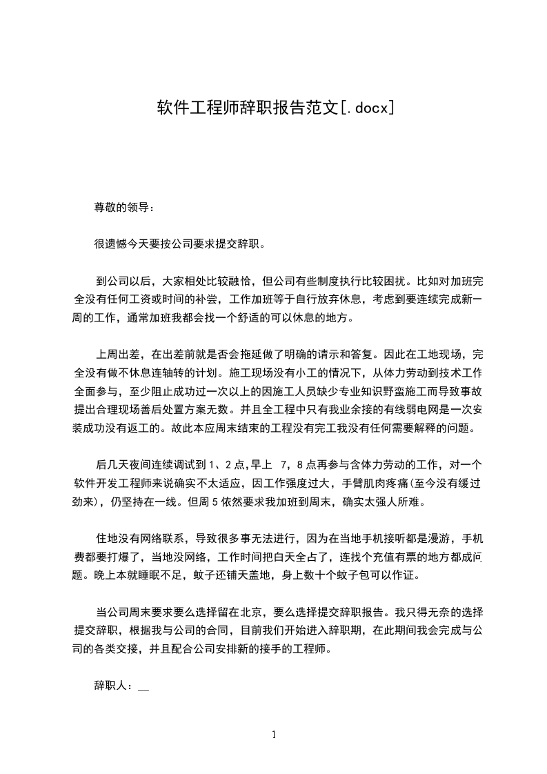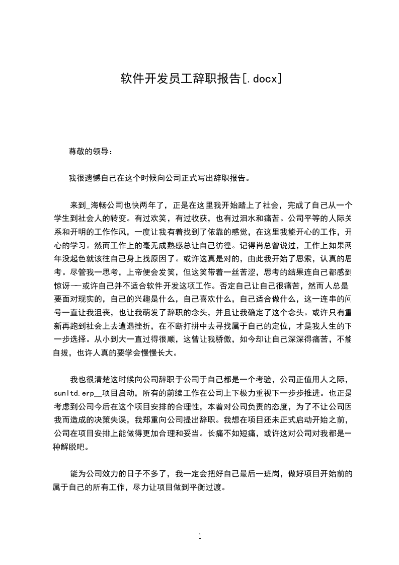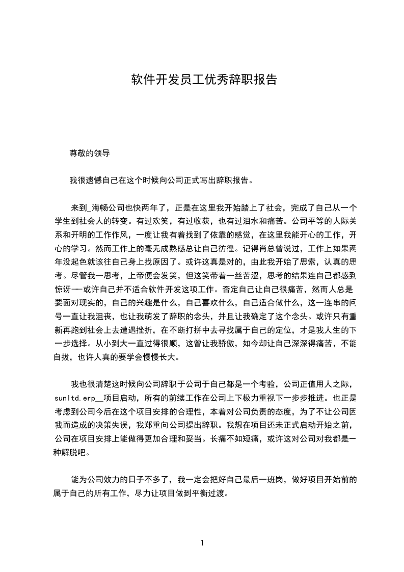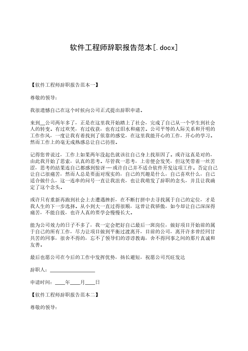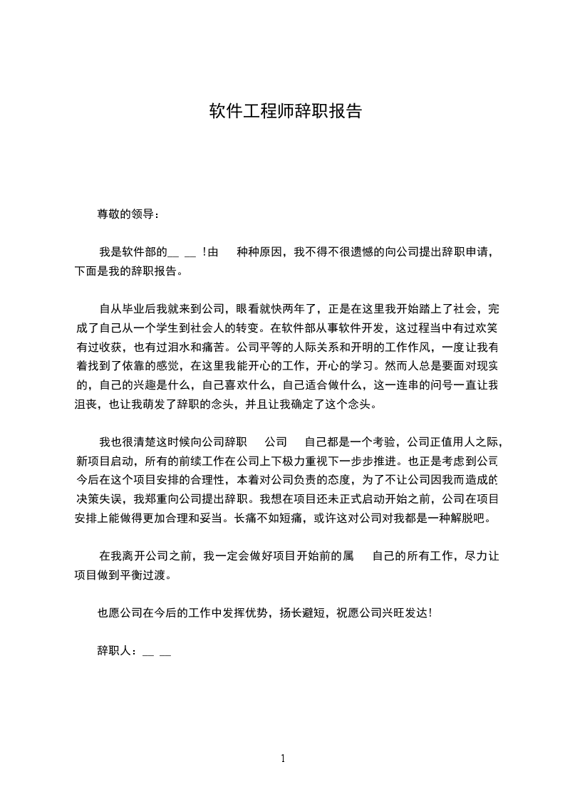 我是软件部的__ __ !由 种种原因,我不得不很遗憾的向公司提出辞职申请,下面是我的辞职报告。