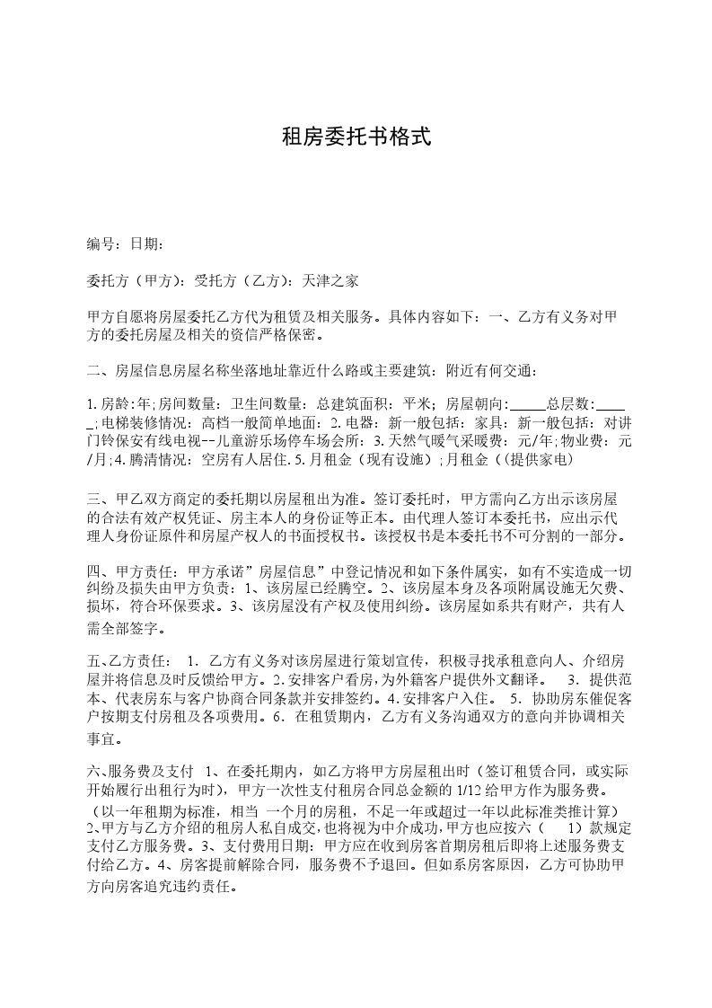 委托方(甲方):受托方(乙方):天津之家