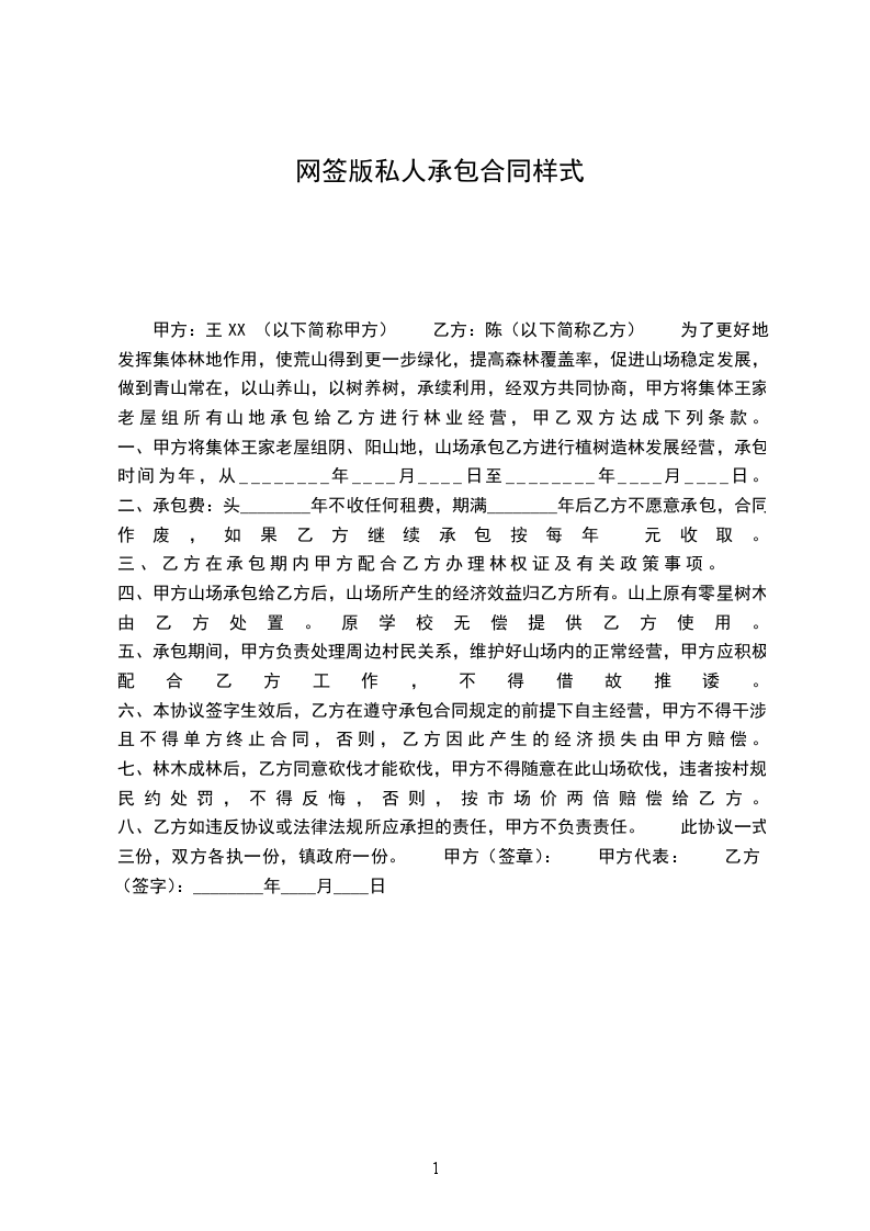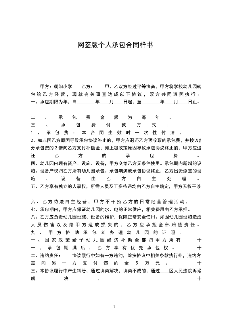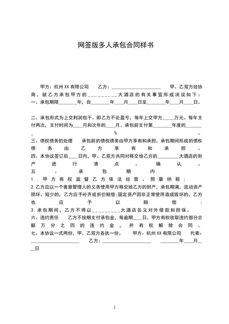 二、承包形式为上交利润包干。即乙方不论盈亏,每年上交甲方 万元。每年支付两次,支付时间为月和次年的____月。承包前支付第________年度的 %。