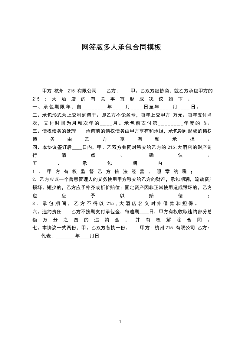 甲方:杭州215;有限公司 乙方: 甲、乙双方经协商,就乙方承包甲方的215;大酒店的有关事宜形成决议如下: