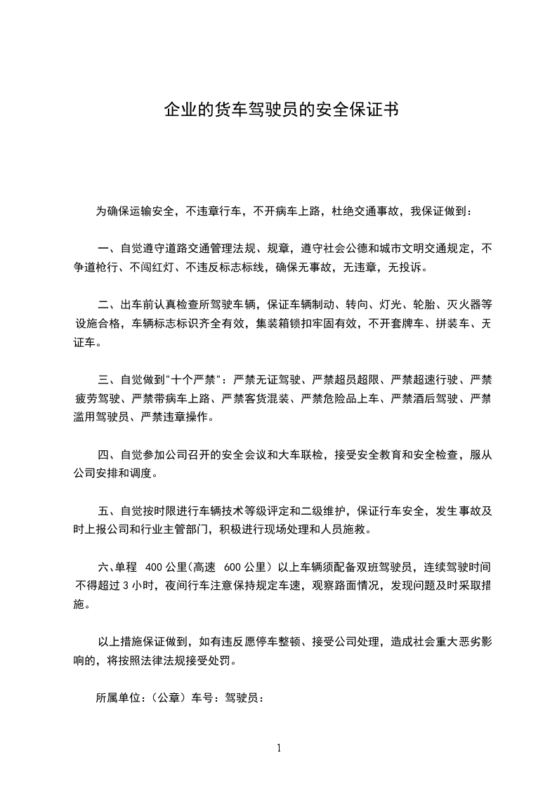 为确保运输安全,不违章行车,不开病车上路,杜绝交通事故,我保证做到: