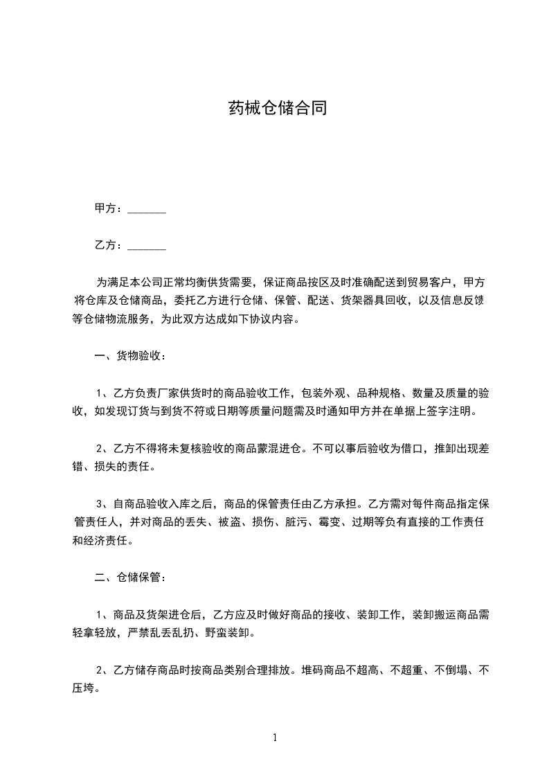甲方: _______(存货方)乙方: _______(保管方)