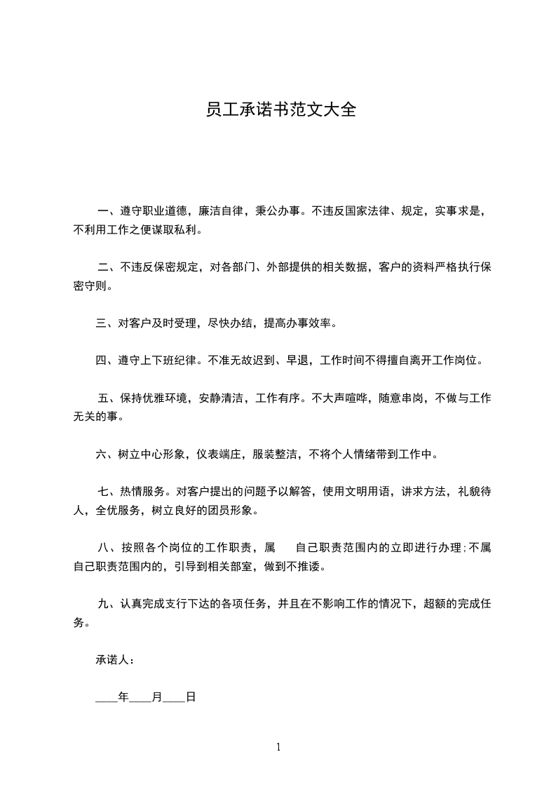 新员工承诺书