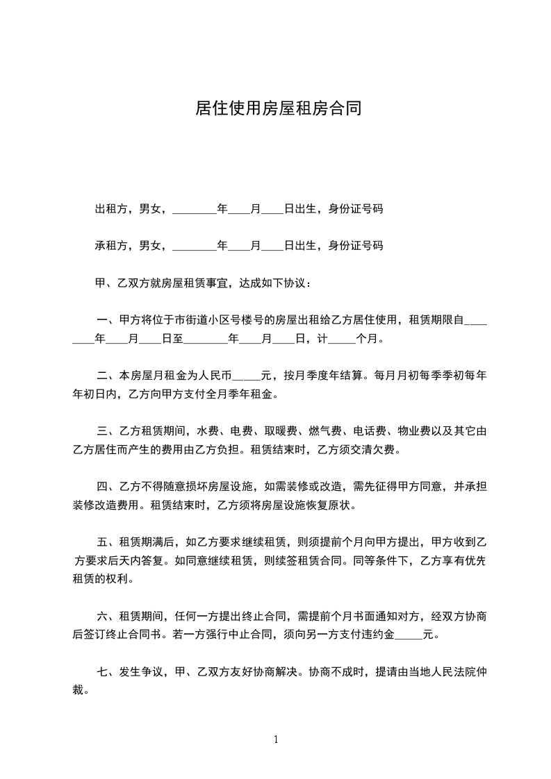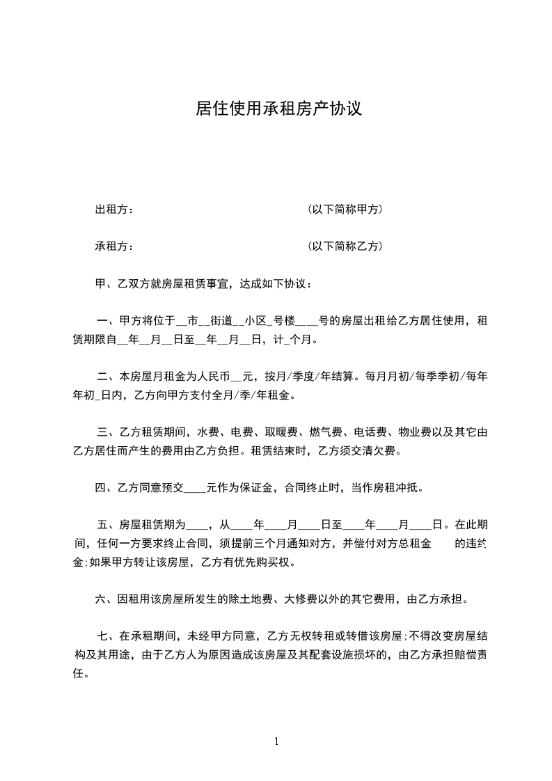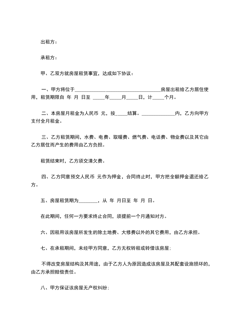 甲方(出租人):_________ 乙方(承租人):_________