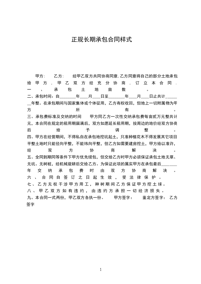 五、全同到期同等条件下甲方优先续包,但交给乙方时甲方必须保证承包土地无草、无坑、无树桩,经机械旋耕后交给乙方。为保证此项的属实甲方在承包最后________年交纳承包费时由双方协商解决。