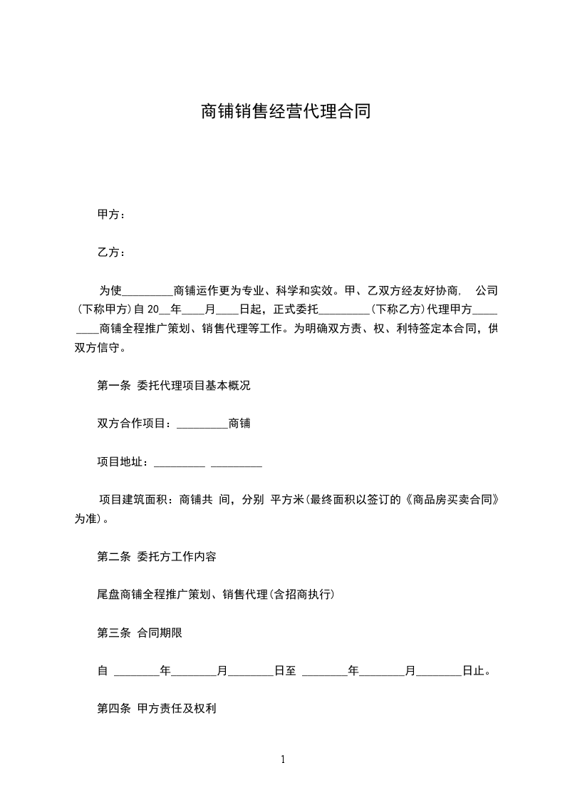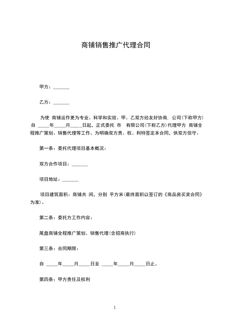 3.1 代理事务:项目的商铺的宣传推广及销售。