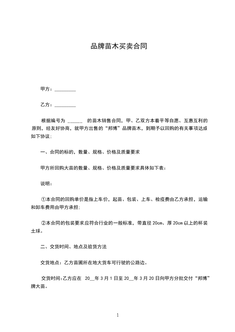 根据编号为 ______ 的苗木销售合同,甲、乙双方本着平等自愿、互惠互利的原则,经友好协商,就甲方出售的“邦博”品牌苗木,到期予以回购的有关事项达成如下协议;