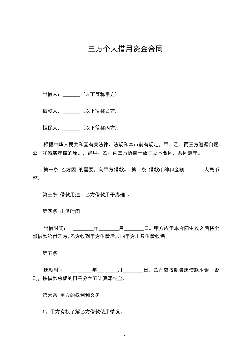 第一条 乙方因 的需要,向甲方借款。 第二条 借款币种和金额:______人民币 整。