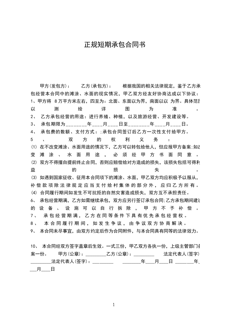 甲方(发包方): 乙方(承包方): 根据我国的相关法律规定,鉴于乙方承包经营本合同中的滩涂、水面的现实情况,甲乙双方经友好协商达成以下协议: