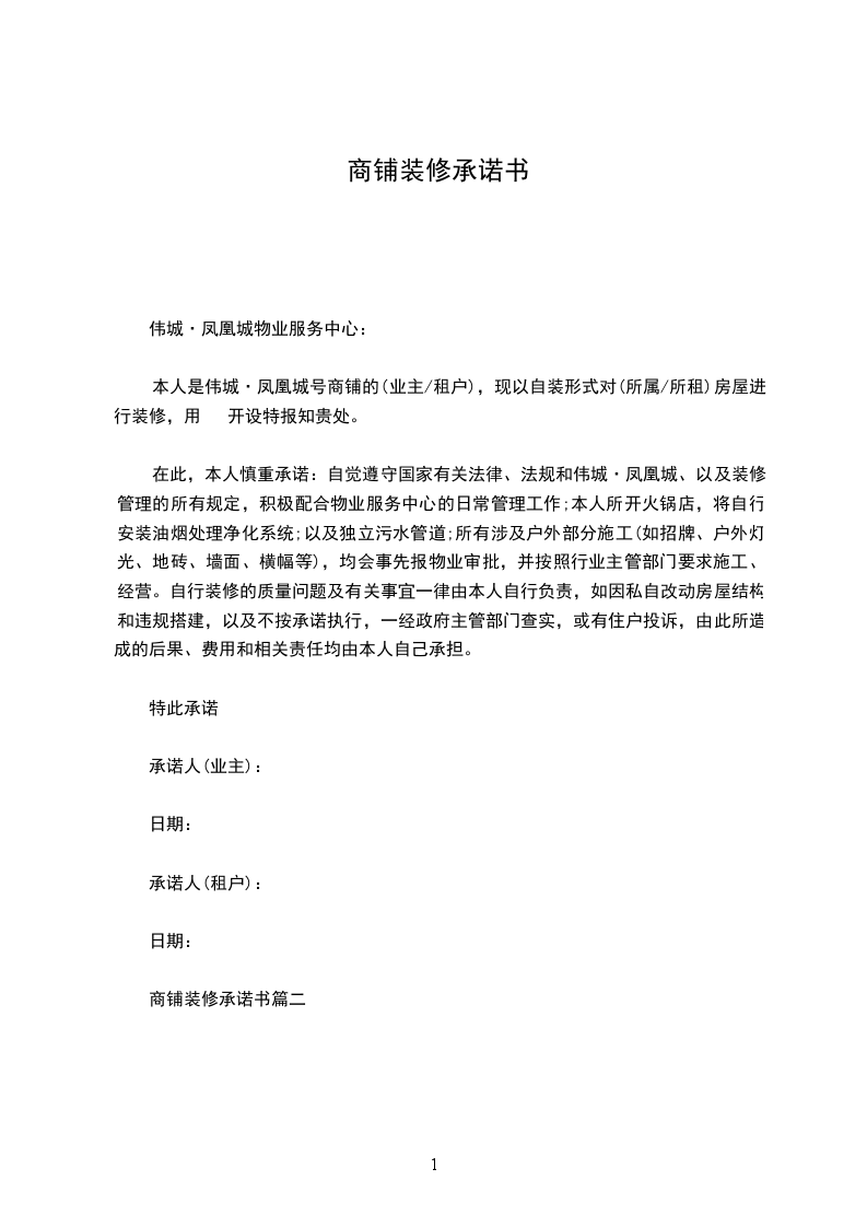商铺装修承诺书篇二
