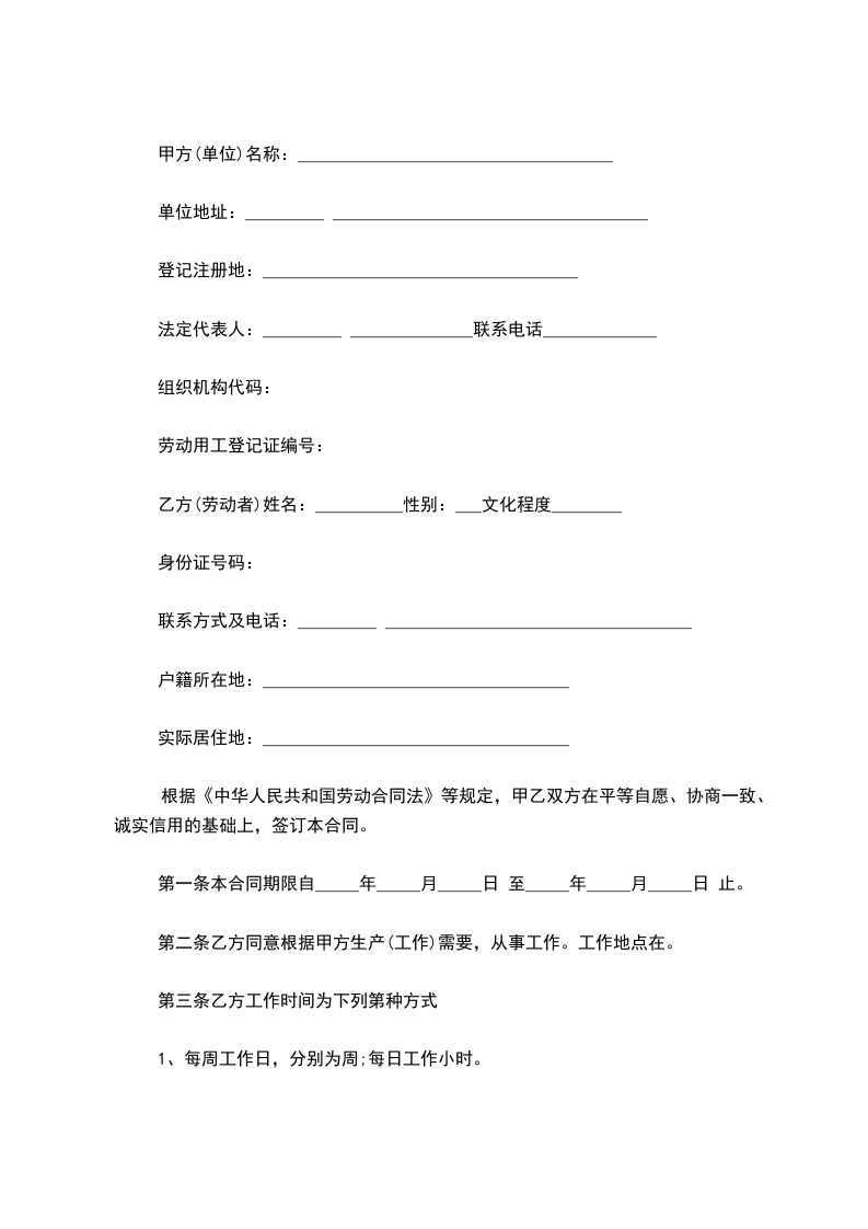 乙方(劳动者)姓名:__________性别:___文化程度________