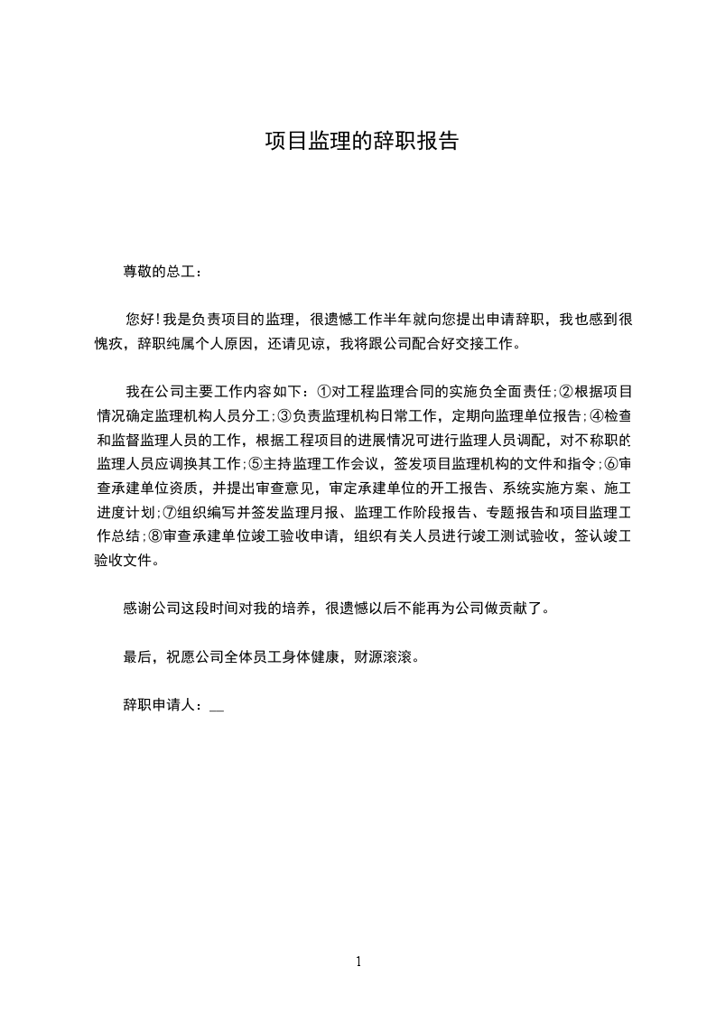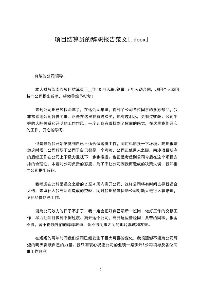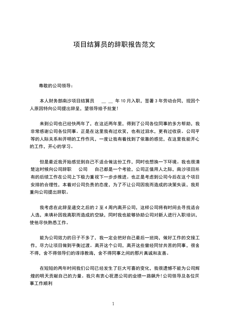 本人财务部南沙项目结算员 __ __ 年10月入职,签署3年劳动合同,现因个人原因特向公司提出辞呈,望领导给予批复!