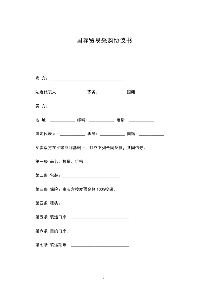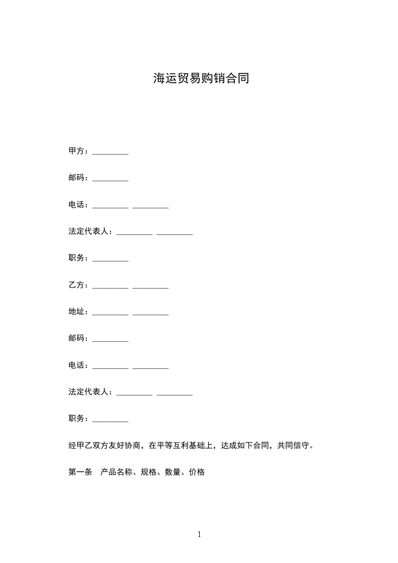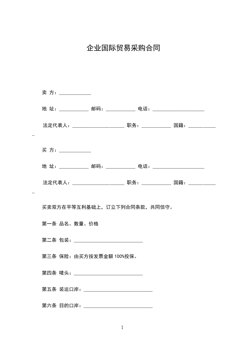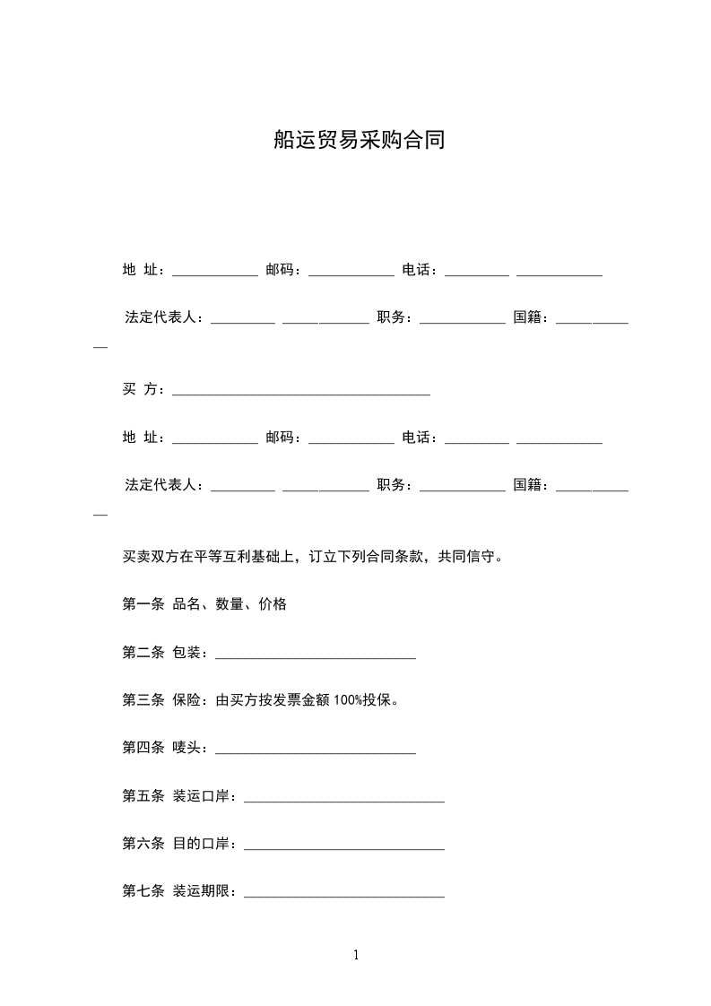 买卖双方在平等互利基础上,订立下列合同条款,共同信守。