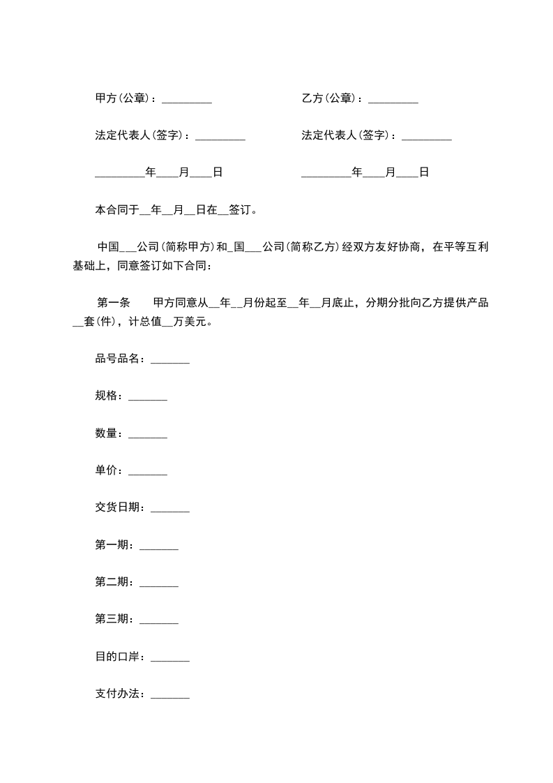 第七条 装运期限:____________________________