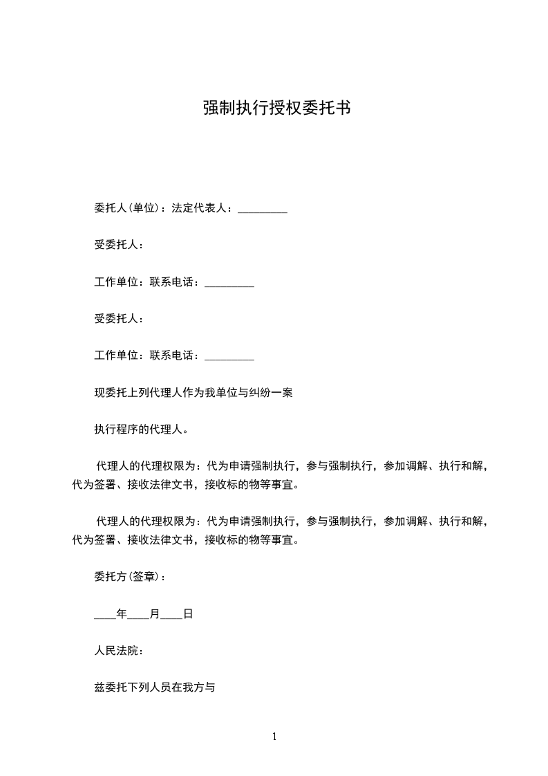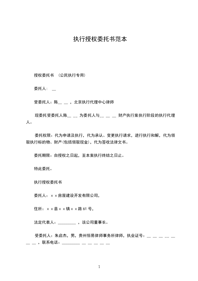 委托权限:代为申请及执行,代为承认、变更执行请求,进行执行和解,代为领取执行标的物、财产(包括领取现金),代为签收法律文书。