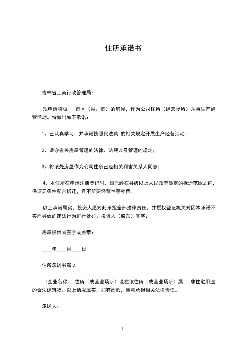 __ __ __ __ __ __ __ 有限公司从事无污染、不扰民、无安全隐患经营项目,将__ __ __ __ __ __ __ __ __ __ 地点作为该企业住所(经营场所)登记使用,该登记不改变住宅性质,不作为房屋征收和拆迁补偿依据。