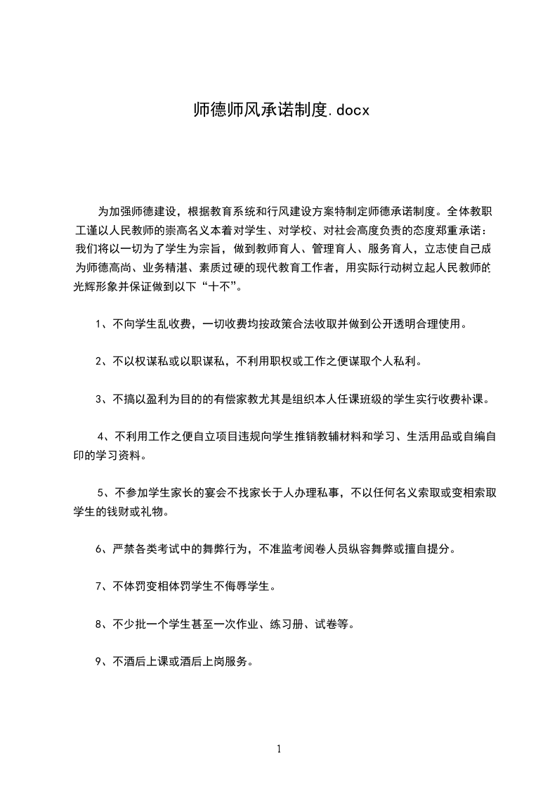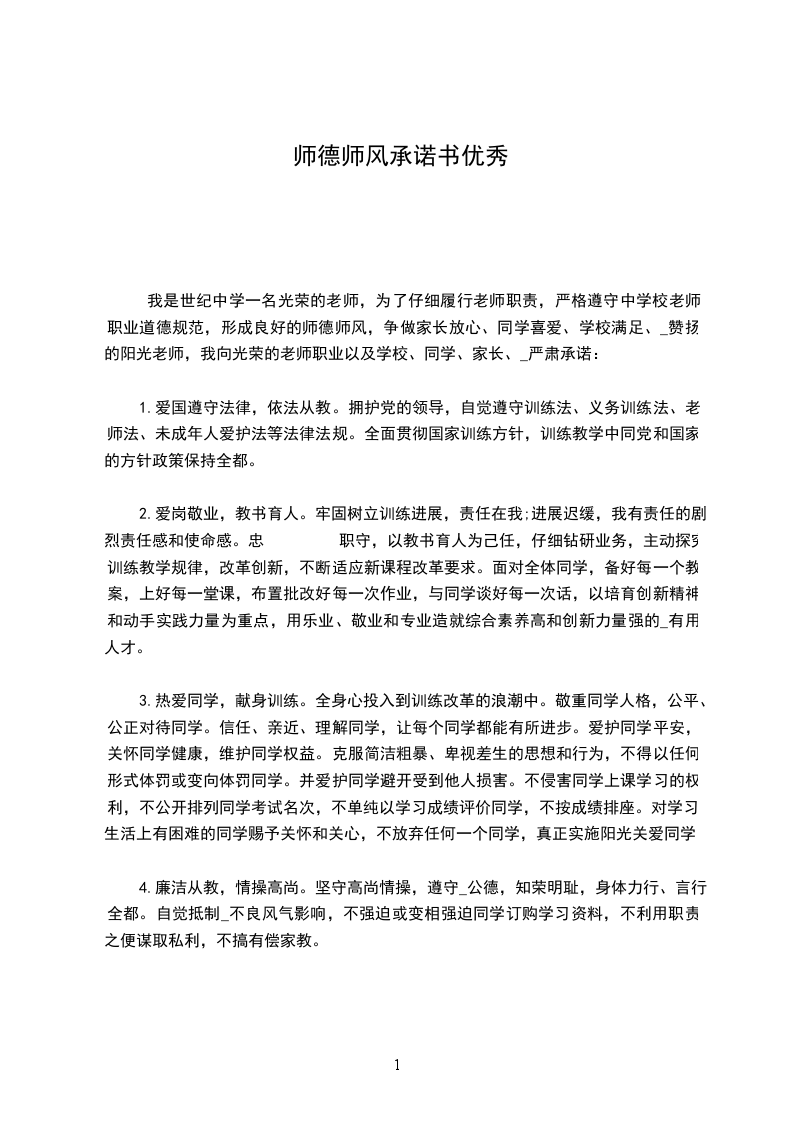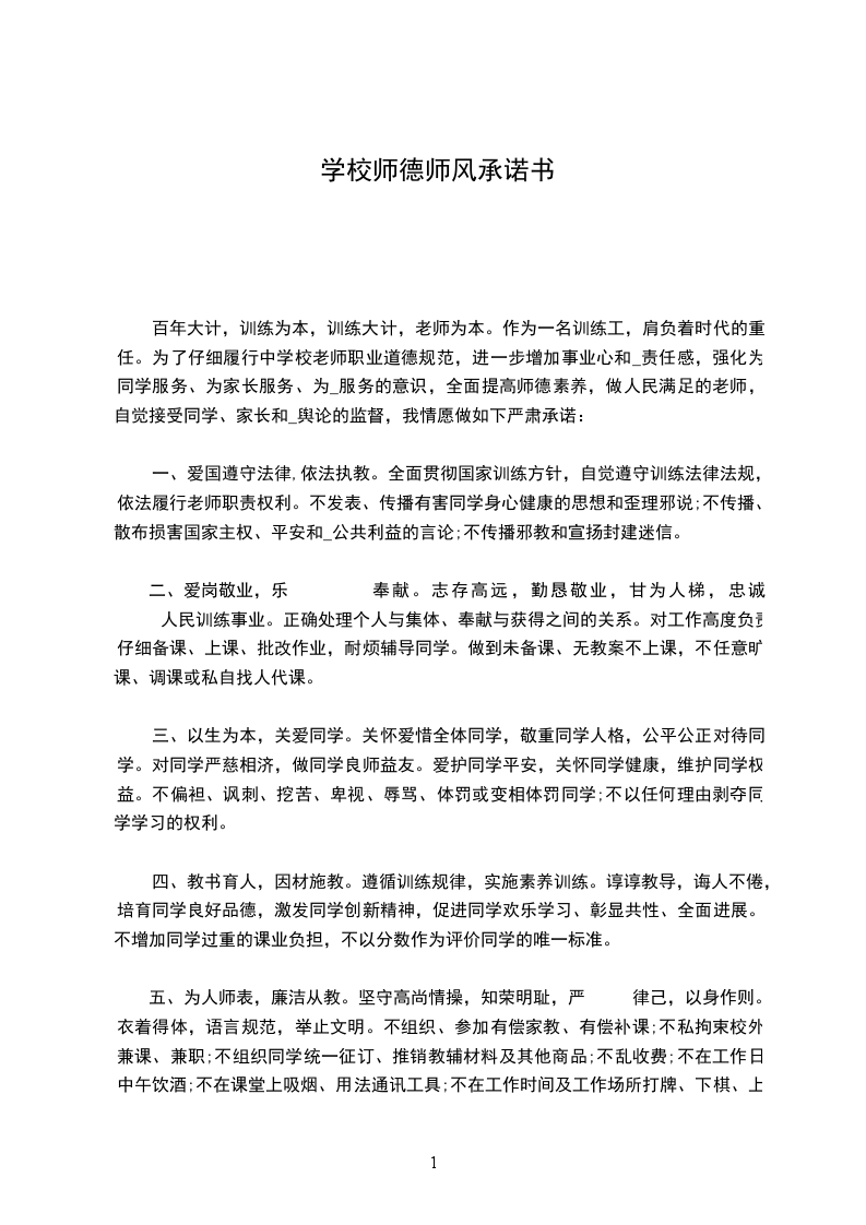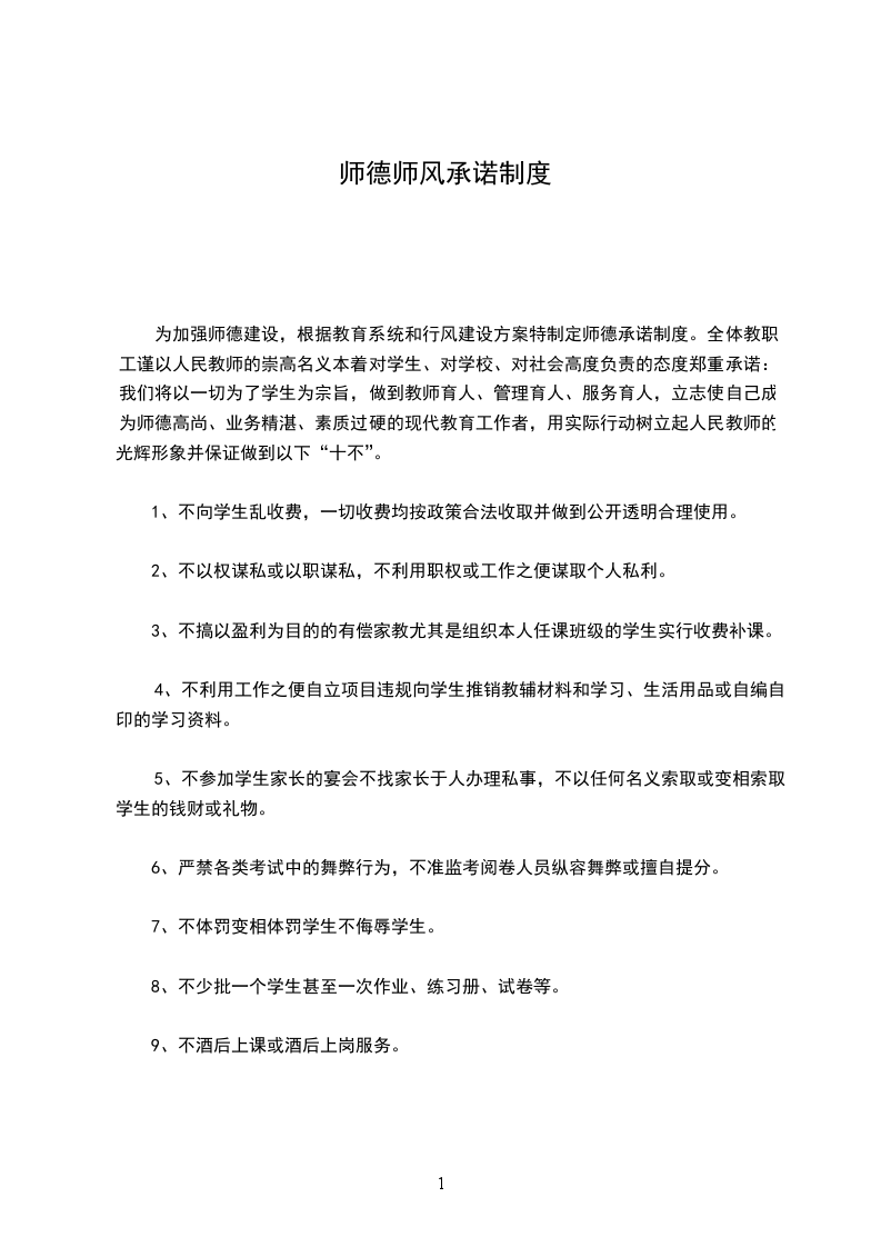 我是一名光荣的人民教师,肩负着教书育人的责任。我将严格遵守,爱岗敬业、关爱学生、刻苦钻研、严谨笃学、勇 创新、奋发进取、淡泊名利、志存高远。争做一名师德高尚的教育工作者,我郑重承诺: