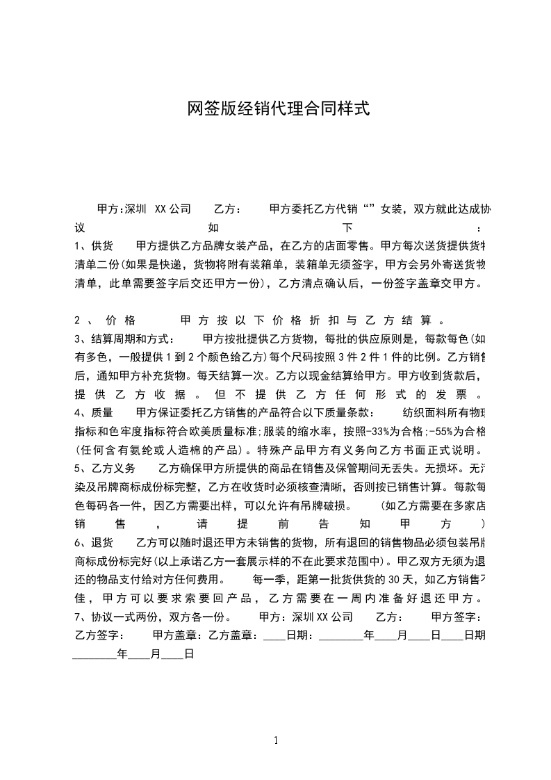 甲方:深圳XX公司 乙方: 甲方委托乙方代销“”女装,双方就此达成协议如下: