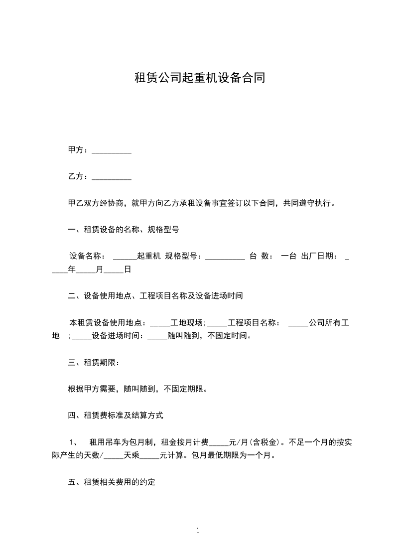 1.乙方提供给甲方起重设备性能可靠,运转正常,获得具有技术监督检测机构颁发的安全使用证,操作人员具有上岗资格证书。