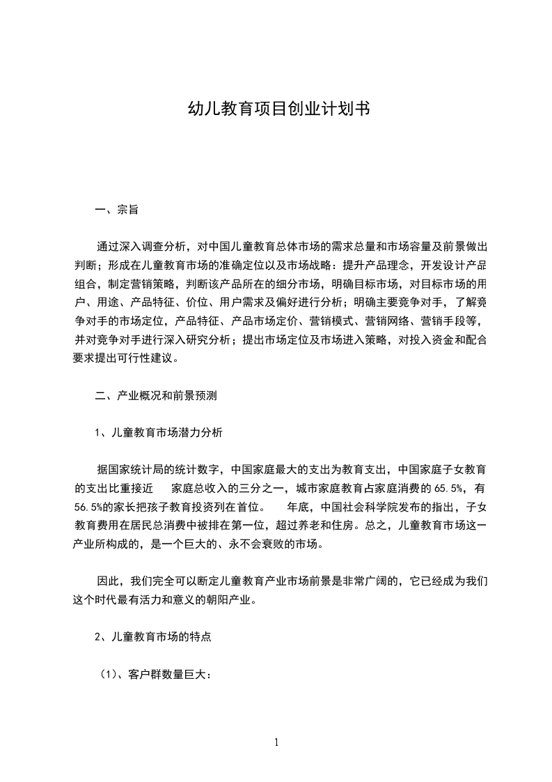 1、幼儿教育市场调查