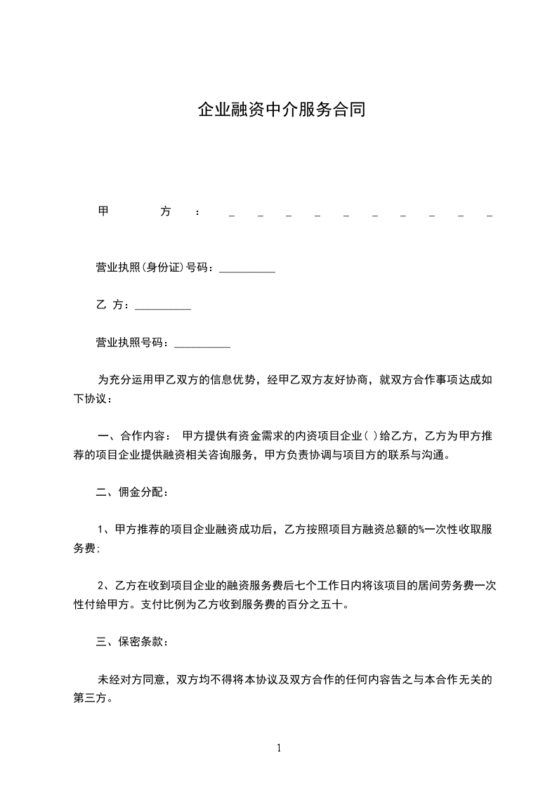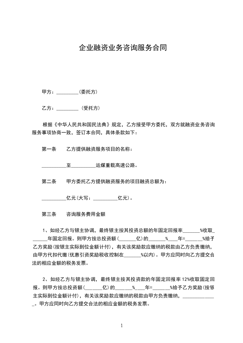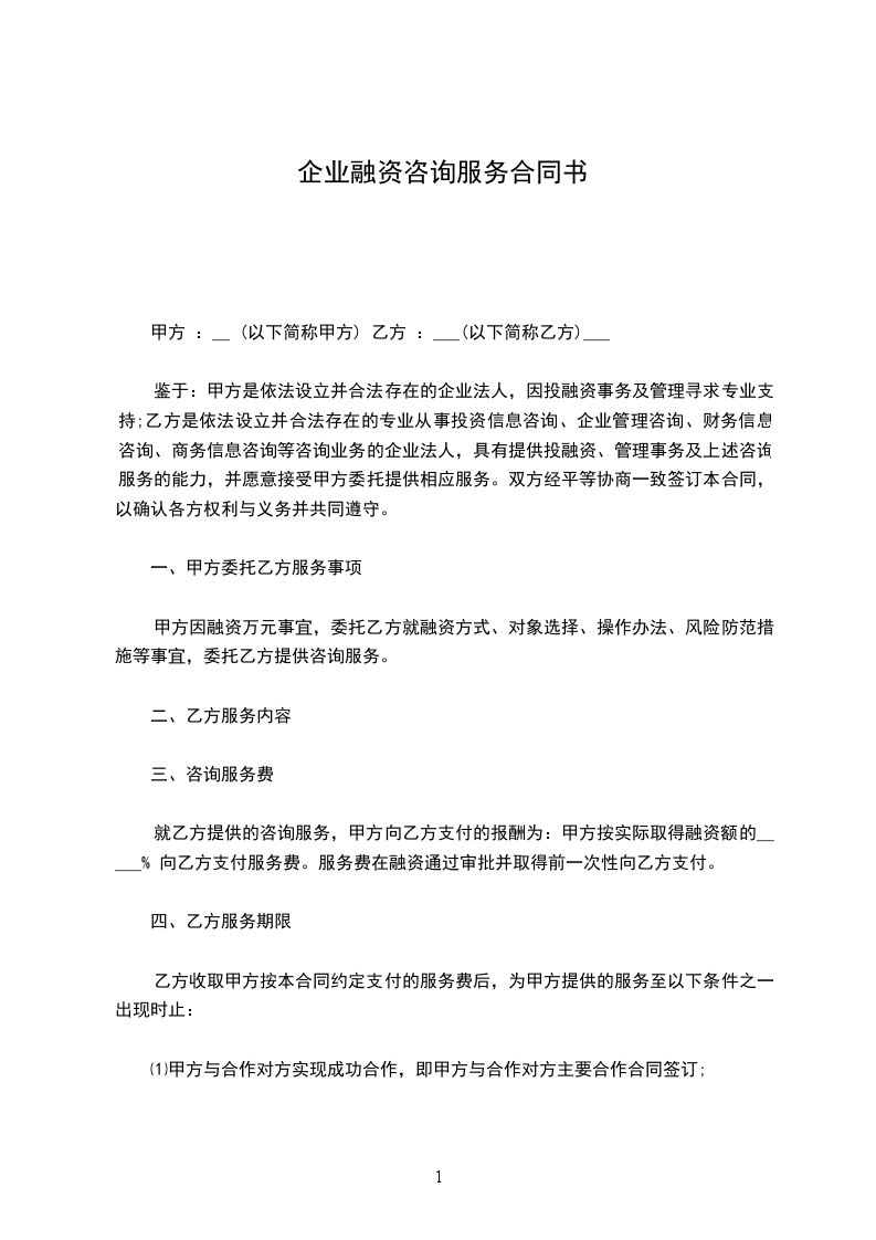 一、委托事项:甲方因需要,意向融资借款人民币大写 元,为实现融资,甲方委托乙方的服务事项包括: