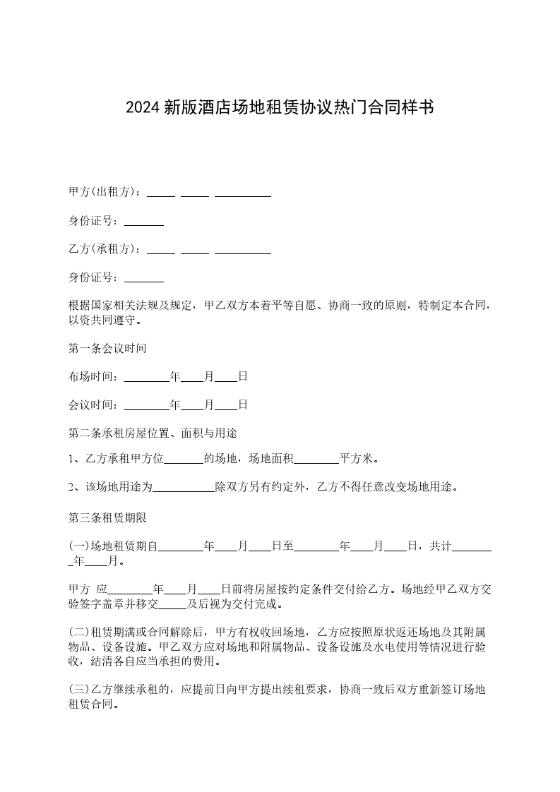 a) 如果甲方在双方议定的租用期限内不能提供场地给乙方,甲方须向乙方支付违约金_____元;