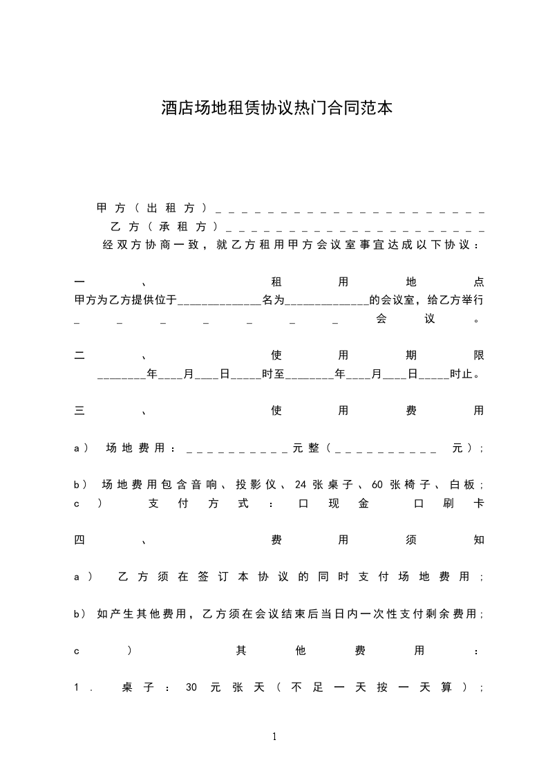 甲方为乙方提供位于______________名为______________的会议室,给乙方举行_______会议。