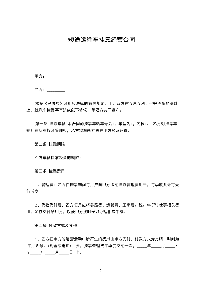 第一条 挂靠车辆 本合同的挂靠车辆车号为:,车型为:,吨位:。 乙方对挂靠车辆拥有所有权及管理权,乙方将车辆挂靠在甲方经营运输。