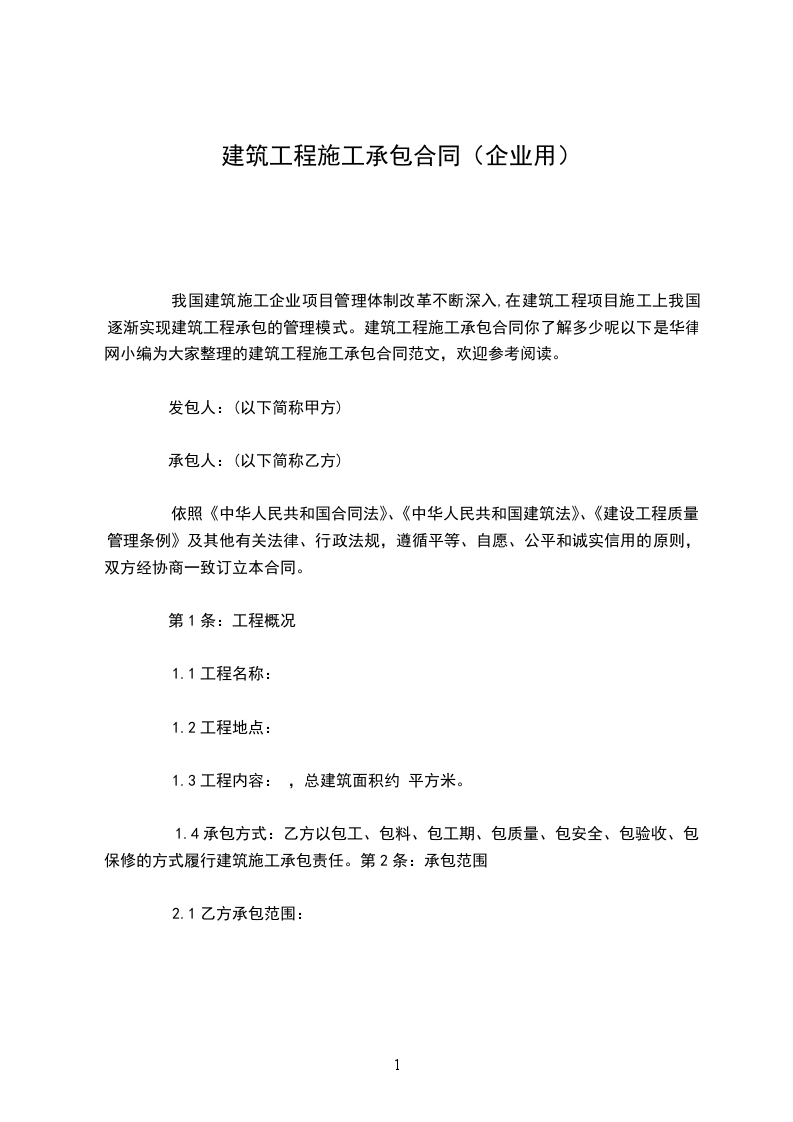 9.5本合同未尽事宜,双方另行协商,签署补充合同。本合同正本两份,具有同等效力,由甲方乙方分别保存一份。甲方(公章):_________ 乙方(公章):_________法定代表人(签字):_________ 法定代表人(签字):________年____月____日 ________年____月____日建筑工程施工承包合同范文2发包方(以下简称甲方):承包方(以下简称乙方):甲、乙双方就住宅楼建筑工程承包事宜经过充分协商,达成协议,特签订本合同。