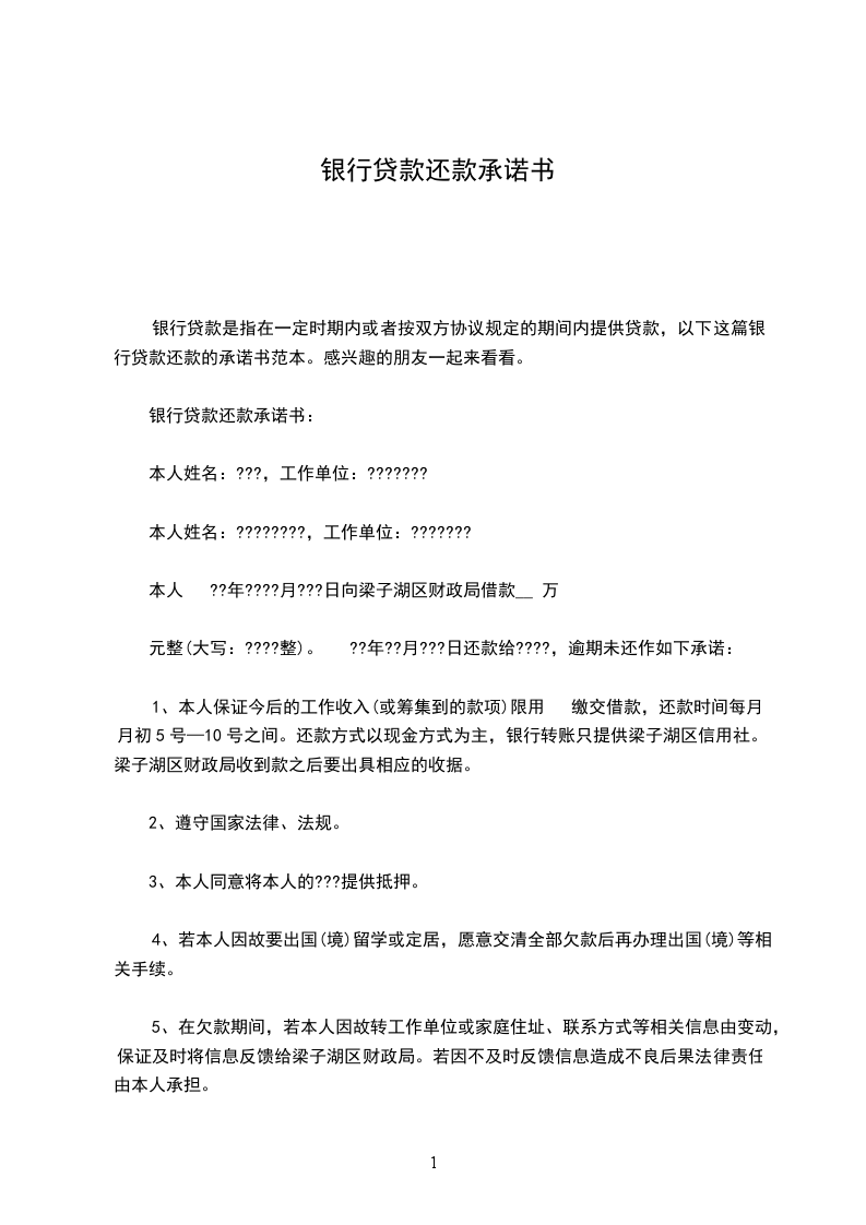 银行贷款是指在一定时期内或者按双方协议规定的期间内提供贷款,以下这篇银行贷款还款的承诺书范本。感兴趣的朋友一起来看看。