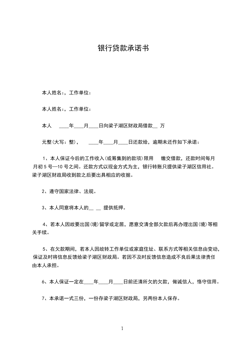 7、本承诺一式三份,一份存梁子湖区财政局,另两份本人保存。