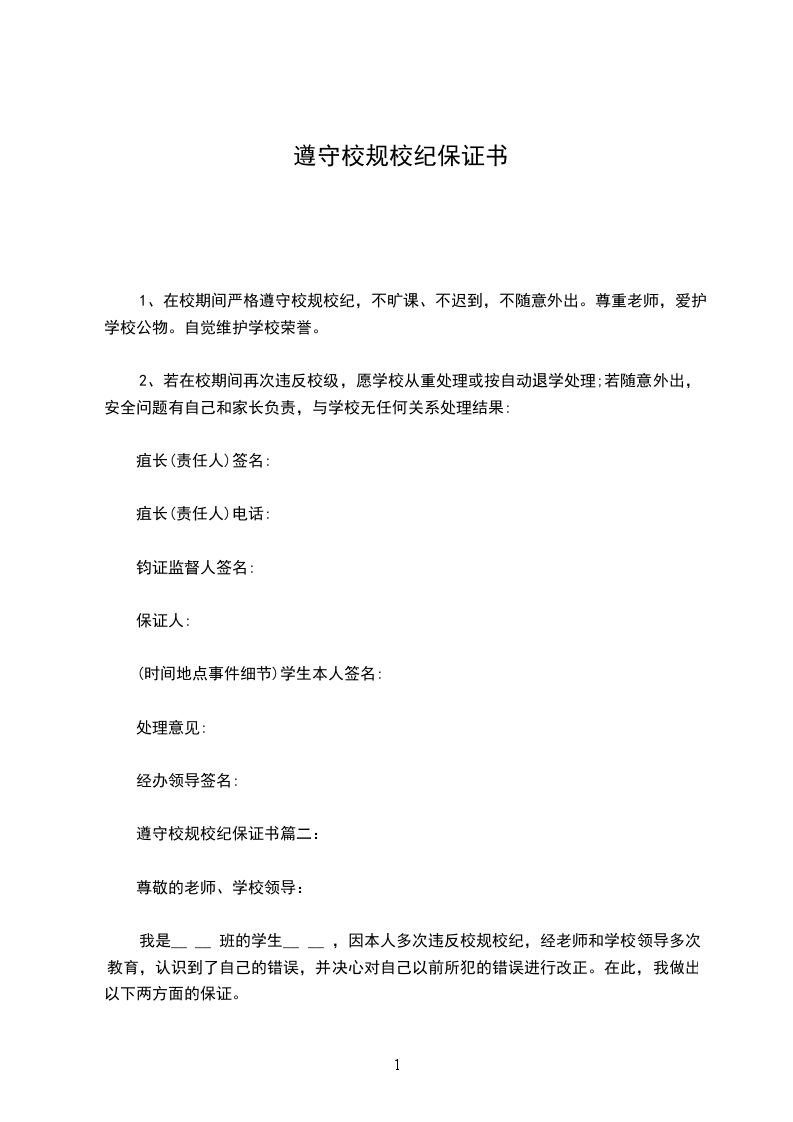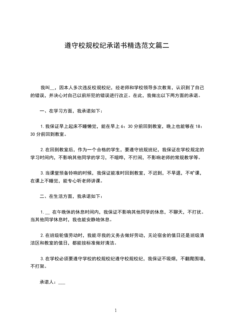 我是__ __ 班的学生__ __ ,因本人多次违反校规校纪,经老师和学校领导多次教育,认识到了自己的错误,并决心对自己以前所犯的错误进行改正。在此,我做出以下两方面的保证。