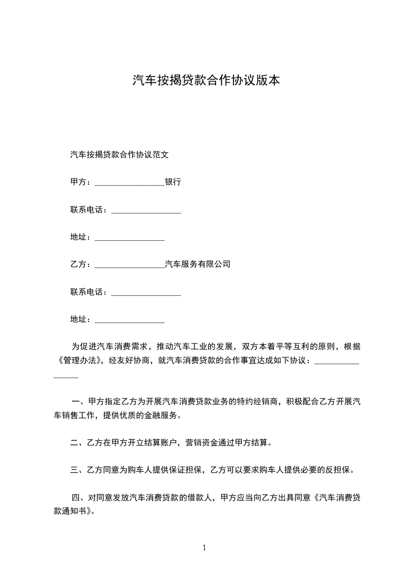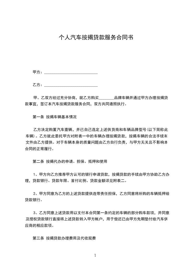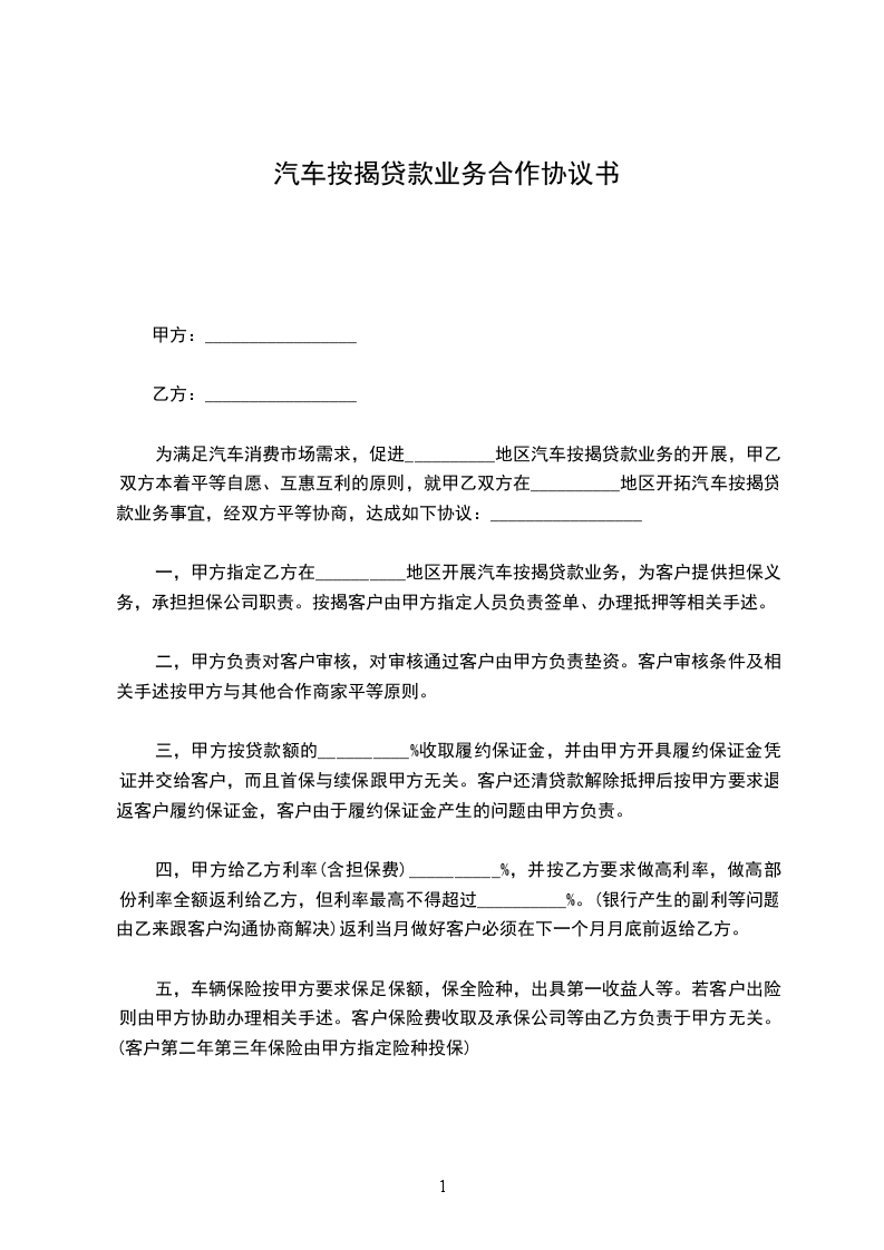 1、甲方向__________银行(请将具体银行名称写清楚)(以下简称贷款银行)申请购车贷款购买货车从事经营,并委托乙方为其汽车贷款提供保证担保,乙方同意为甲方汽车贷款提供保证担保服务。