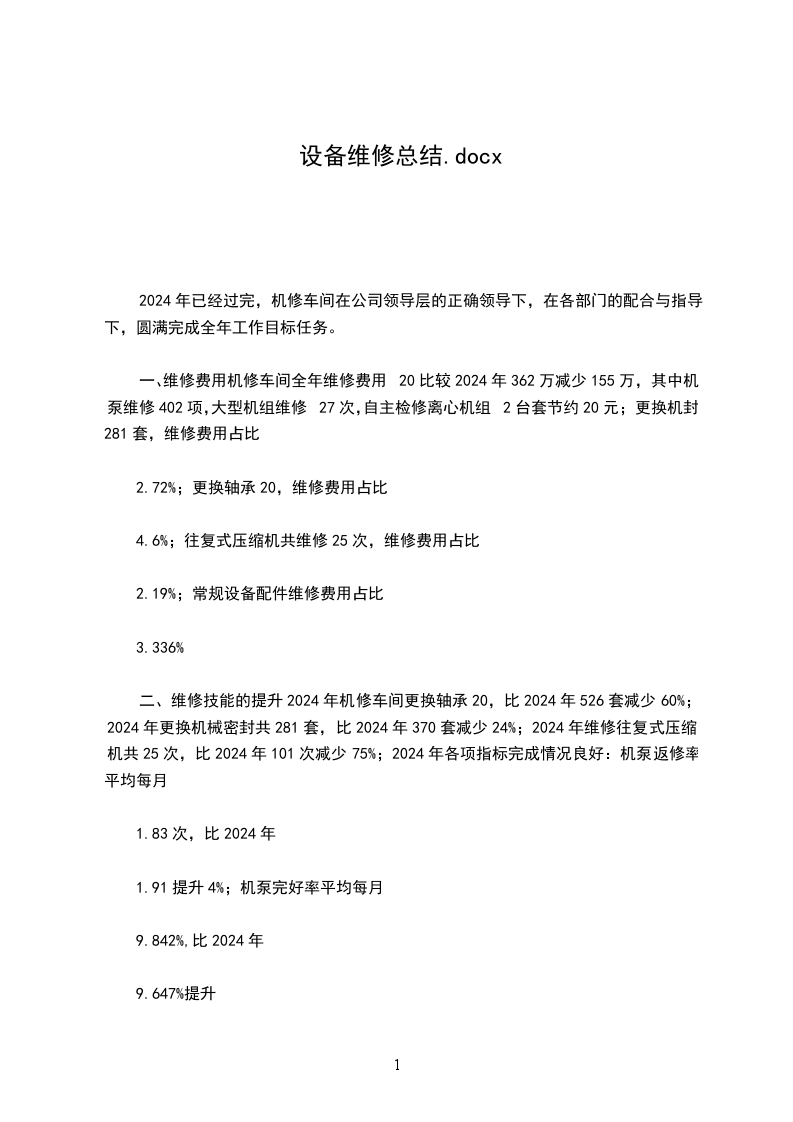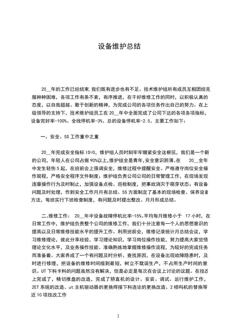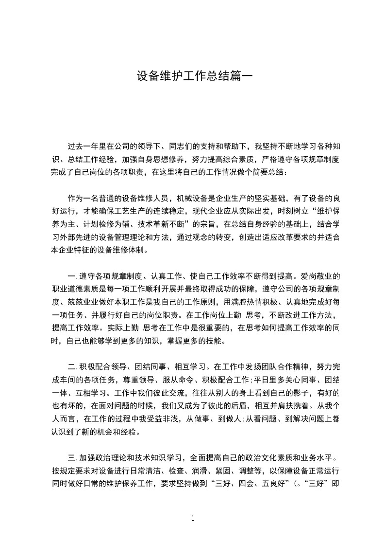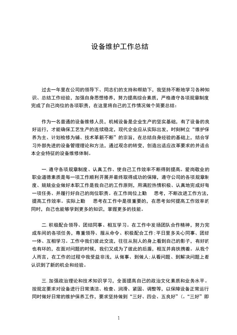 设备维护工作总结篇三