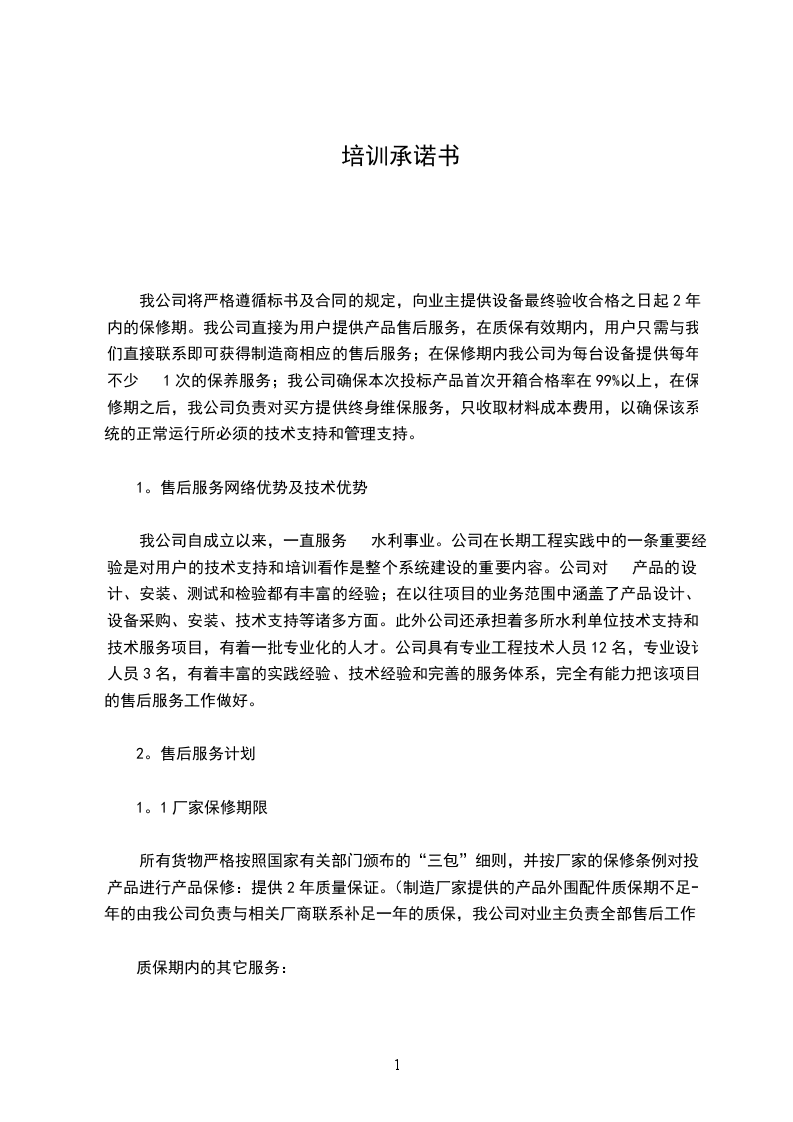 我公司自成立以来,一直服务 水利事业。公司在长期工程实践中的一条重要经验是对用户的技术支持和培训看作是整个系统建设的重要内容。公司对 产品的设计、安装、测试和检验都有丰富的经验;在以往项目的业务范围中涵盖了产品设计、设备采购、安装、技术支持等诸多方面。此外公司还承担着多所水利单位技术支持和技术服务项目,有着一批专业化的人才。公司具有专业工程技术人员12名,专业设计人员3名,有着丰富的实践经验、技术经验和完善的服务体系,完全有能力把该项目的售后服务工作做好。
