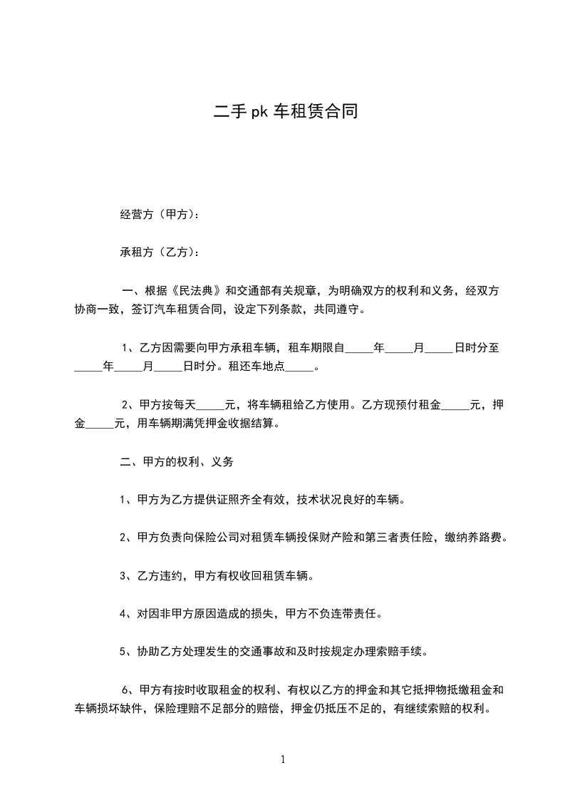 11、乙方在用车期满,应完好无缺损将车辆交给甲方。不得卸下里程表和故意损坏里程表,如有发生按日里程1000公里收费,不得更换车辆零部件。