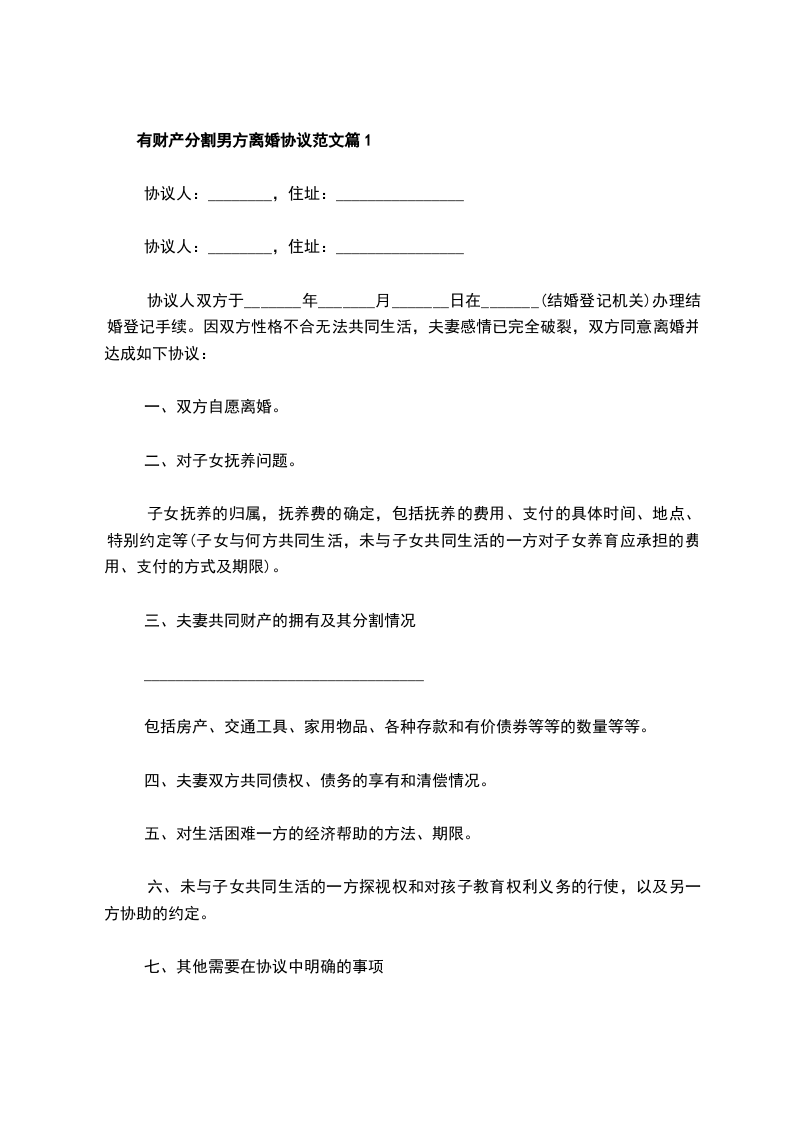 7、本协议一式三份,男、女双方各执一份,婚姻登记机关存档一份,自婚姻登记机颁发《离婚证》之日起生效。