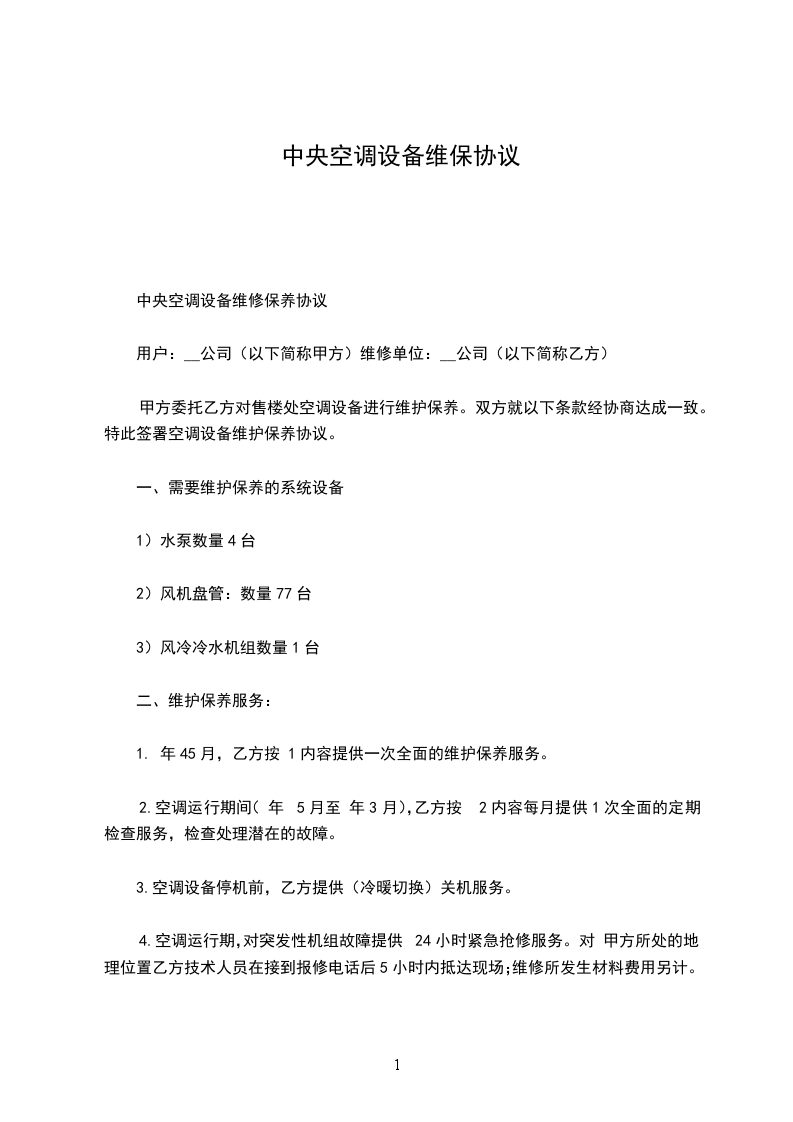 4、_______ 年 _____月 ____日前完成现场组装和调试工作,达到正常使用状态。