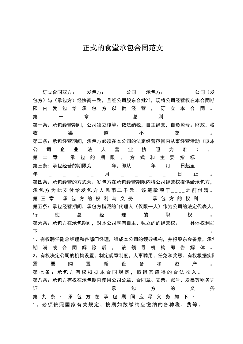 订立合同双方: 发包方:————公司 承包方:———— 公司(发包方)与(承包方)经协商一致,且经公司股东会批准,现将公司经营权在本合同期限内发包给承包方以供经营,订立本合同。